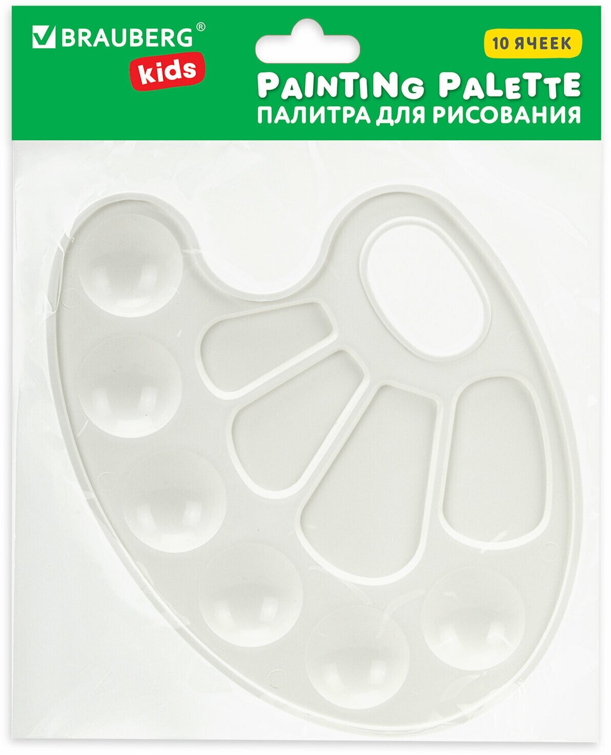 Палитра для акварели и смешивания красок для рисования Brauberg Kids, прозрачная, овальная, 10 ячеек (6 ячеек для красок и 4 для смешивания), 192354