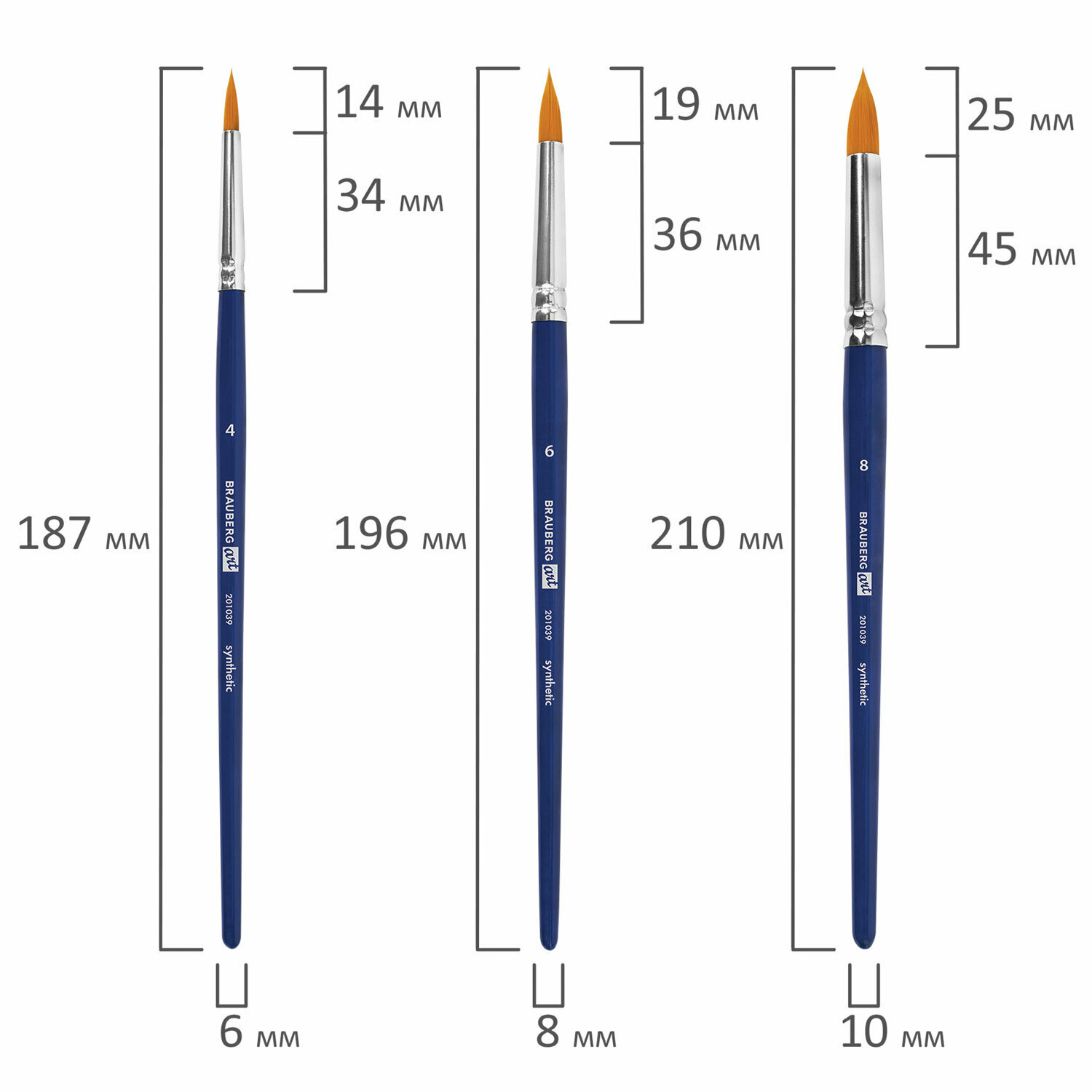 Кисти для рисования художественные набор 3 штуки, синтетика овальные № 6 10 14, Brauberg Art Debut, 201040