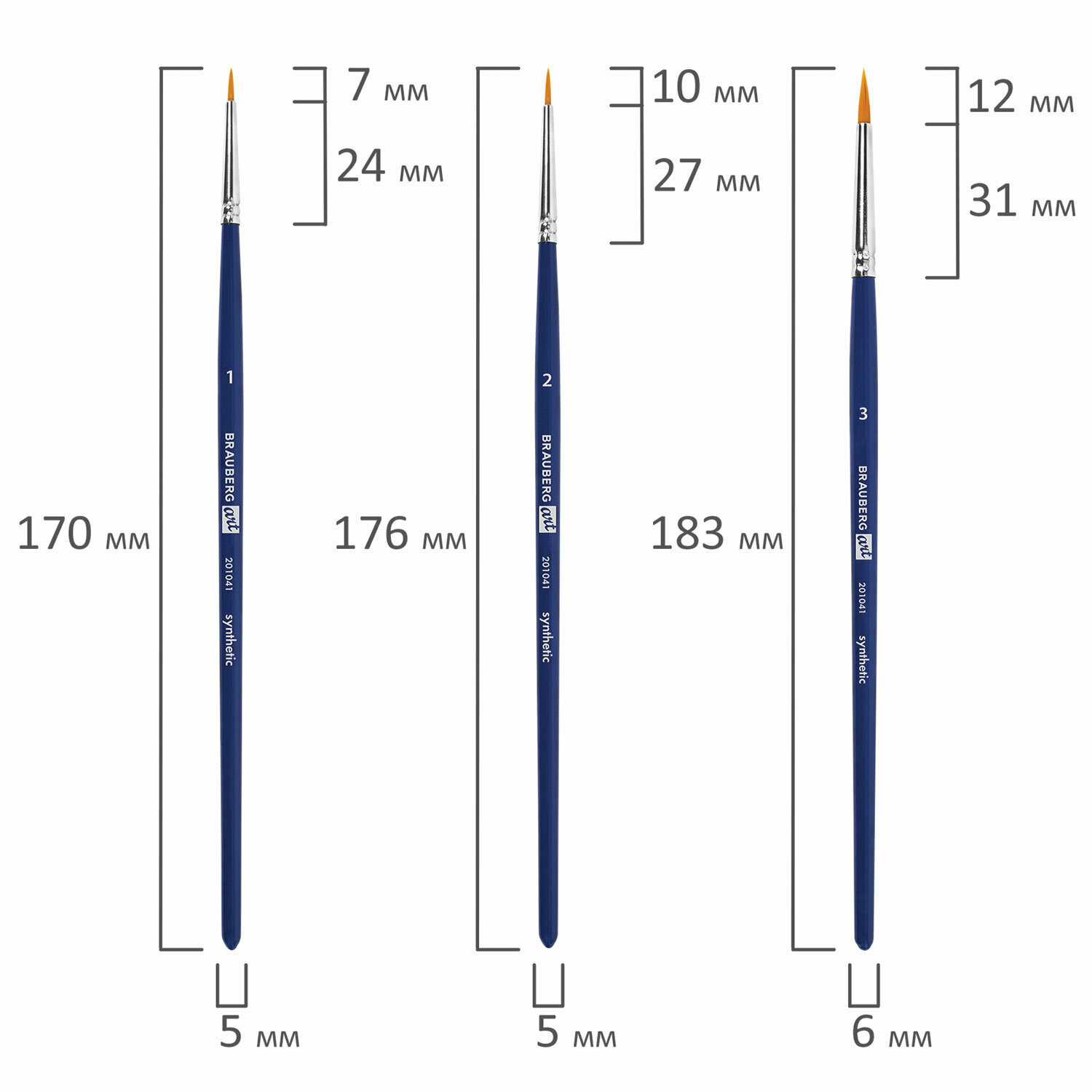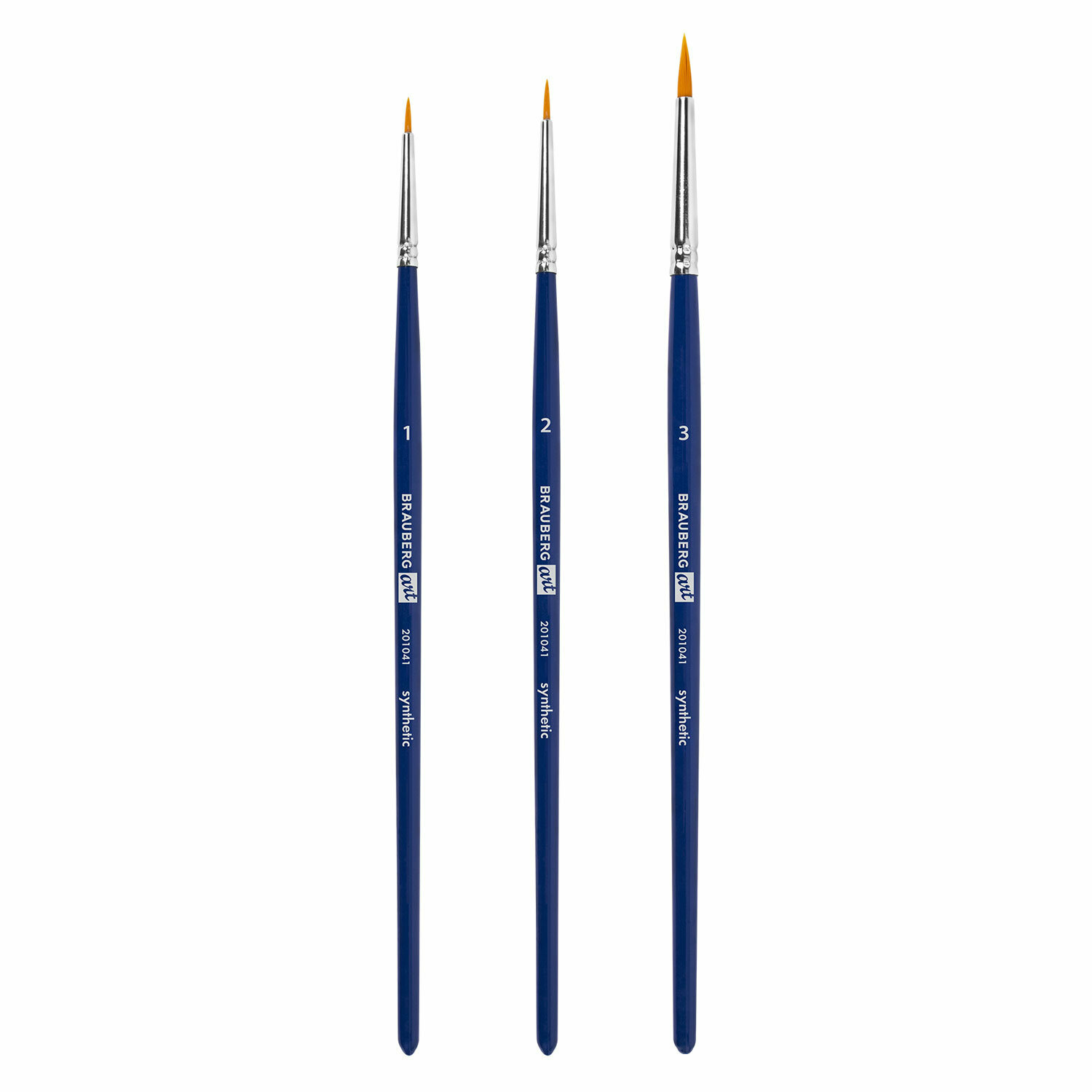 Кисти для рисования художественные набор 3 штуки, синтетика круглые № 1 2 3, Brauberg Art Debut, 201041