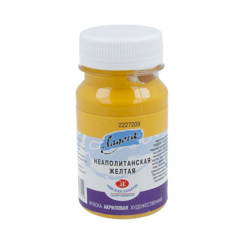 Завод художественных красок «Невская палитра» Краска акриловая художественная в банке 100 мл, ЗХК "Ладога", неаполитанская жёлтая, 2227209