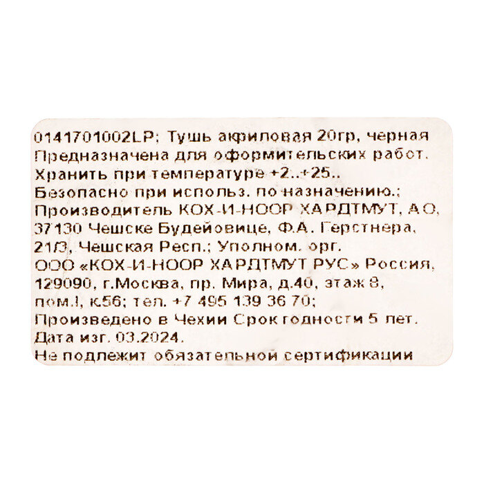 Купить Тушь "KOH-I-NOOR Hardtmuth" 20 г 0141701002LP черная