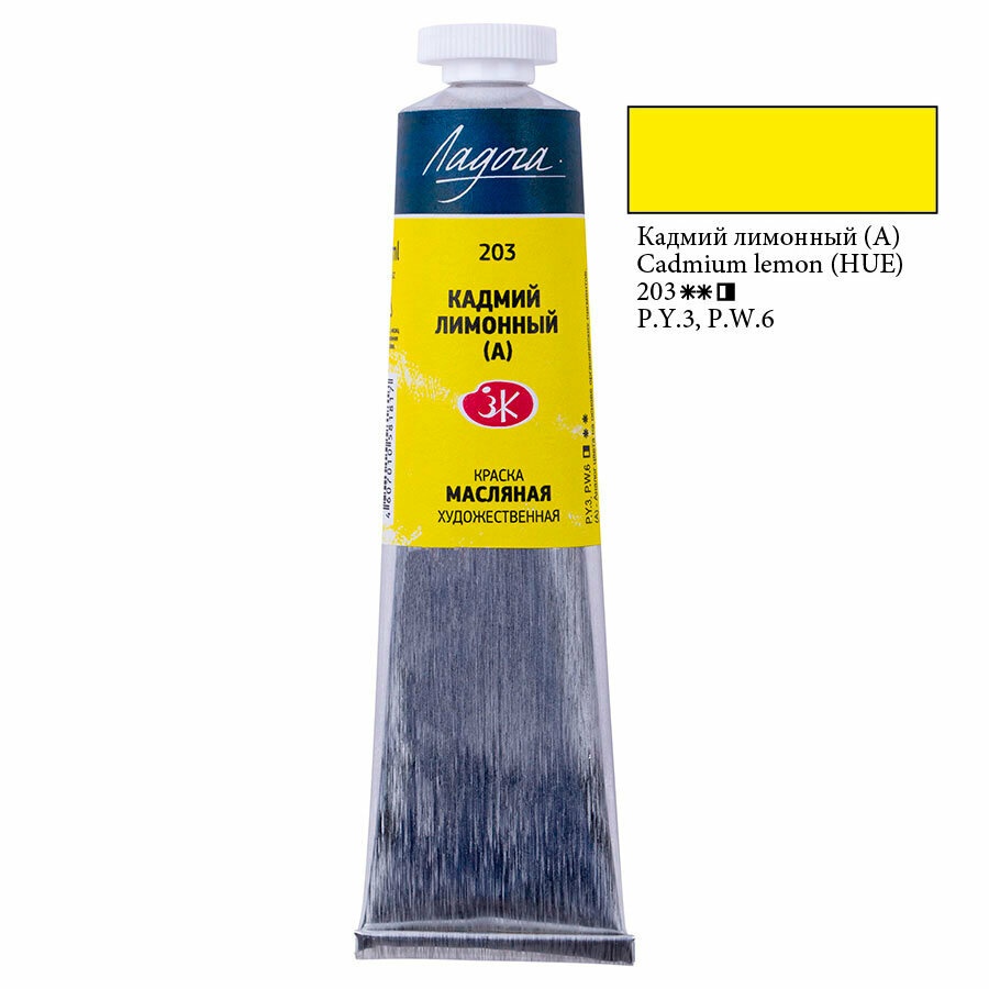 Краска масляная художественная Ладога кадмий лимонный (А) цв. № 203 туба 46мл