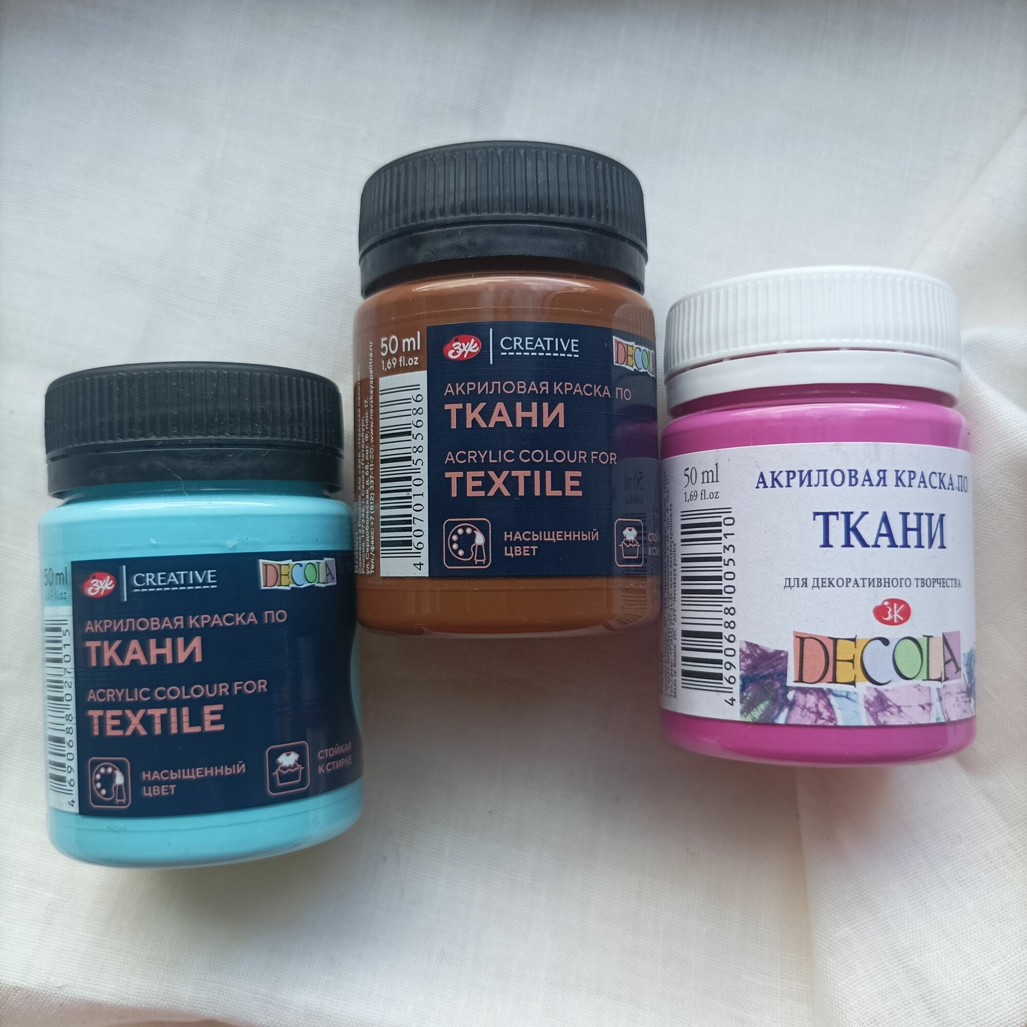 Краска по ткани, банка 50 мл, ЗХК Decola, Телесная 4128235, (акриловая на водной основе)
