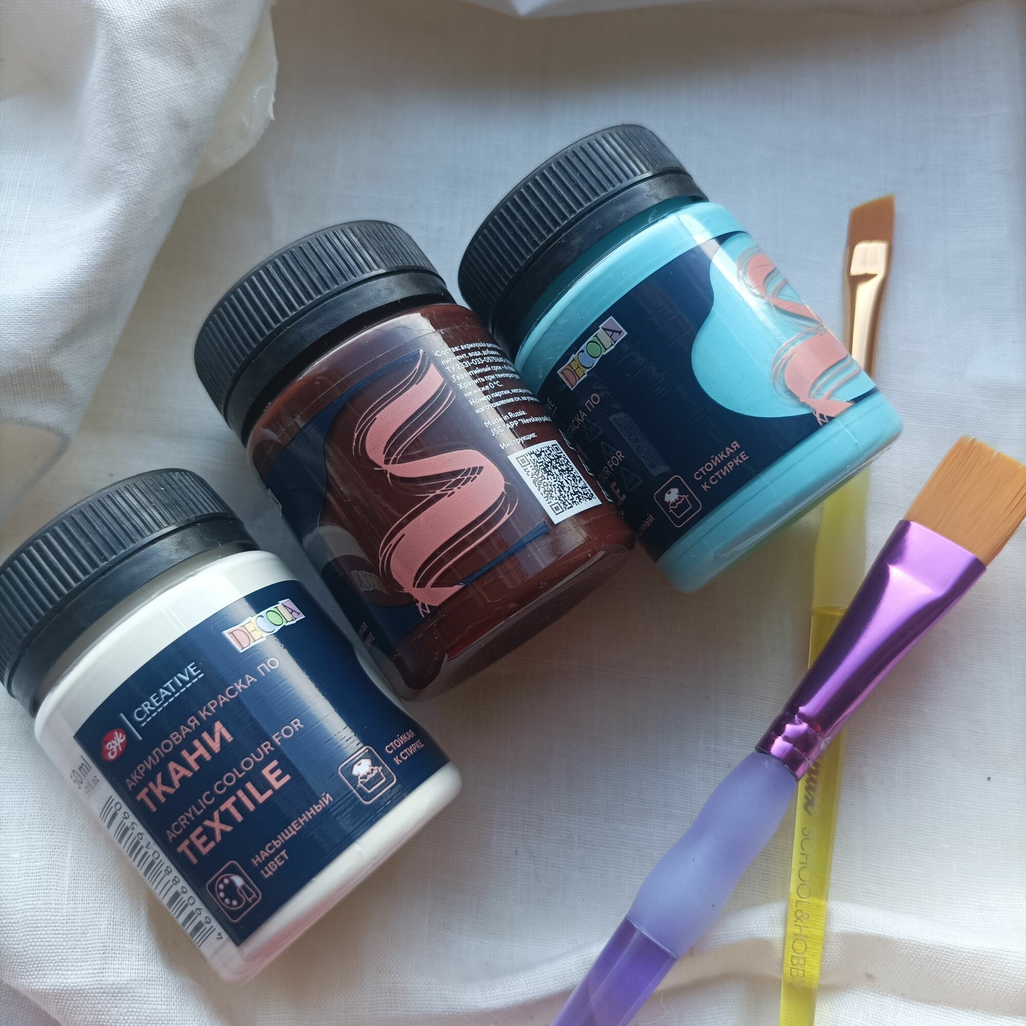 Краска по ткани, банка 50 мл, ЗХК Decola, Телесная 4128235, (акриловая на водной основе)