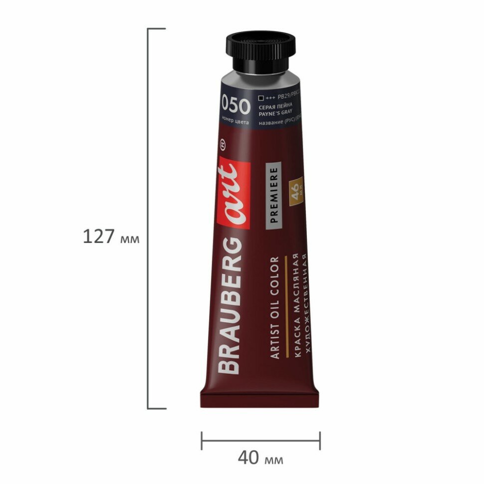Краска масляная художественная Brauberg ART PREMIERE, 46 мл, проф. серия, серая пейна, 191445