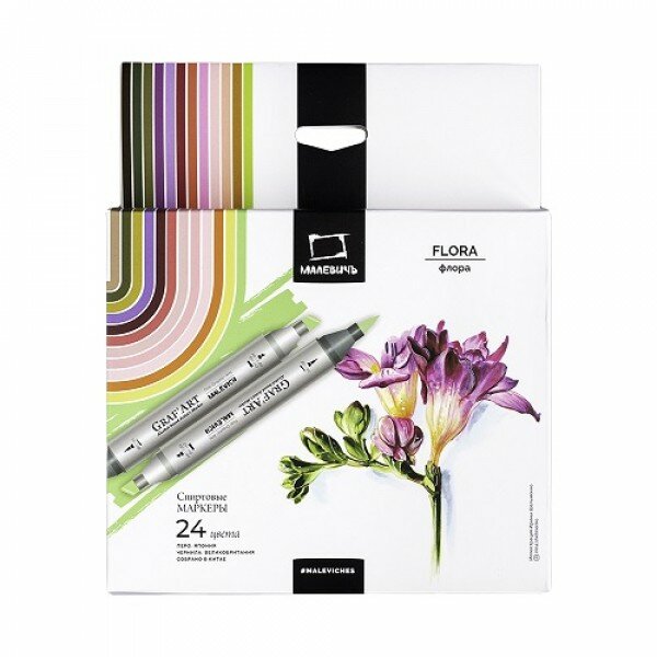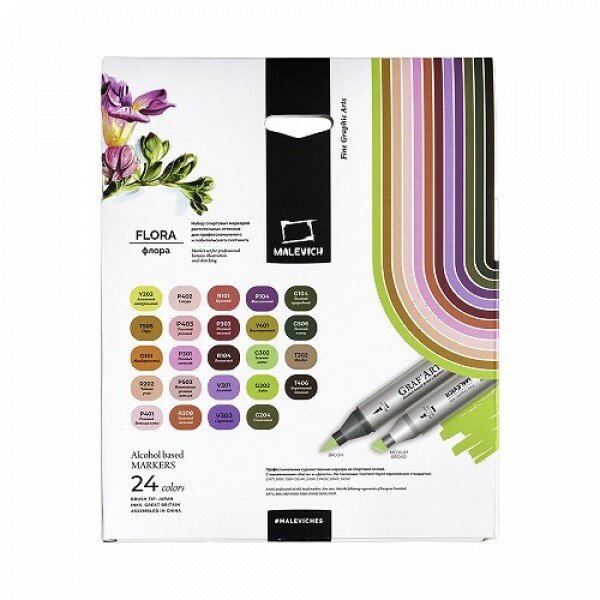 Набор спиртовых маркеров Малевичъ Graf'Art Brush, Флора 24 цвета интересное: