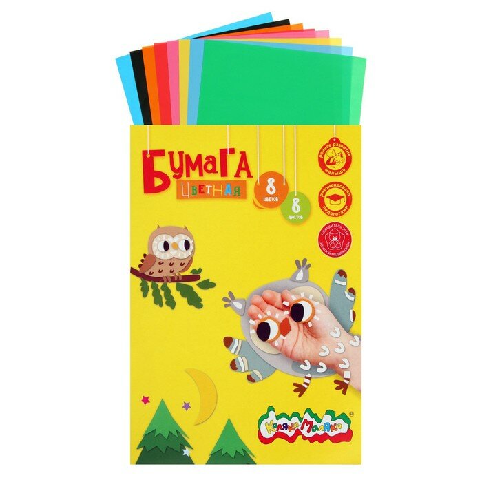 Каляка-Маляка Бумага цветная А4, 8 листов. 8 цветов «Каляка-Маляка», мелованная