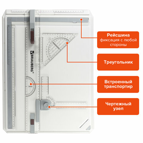 Brauberg Доска чертежная А3, 505х370 мм, с рейсшиной, треугольником и чертежным узлом, 210536 .