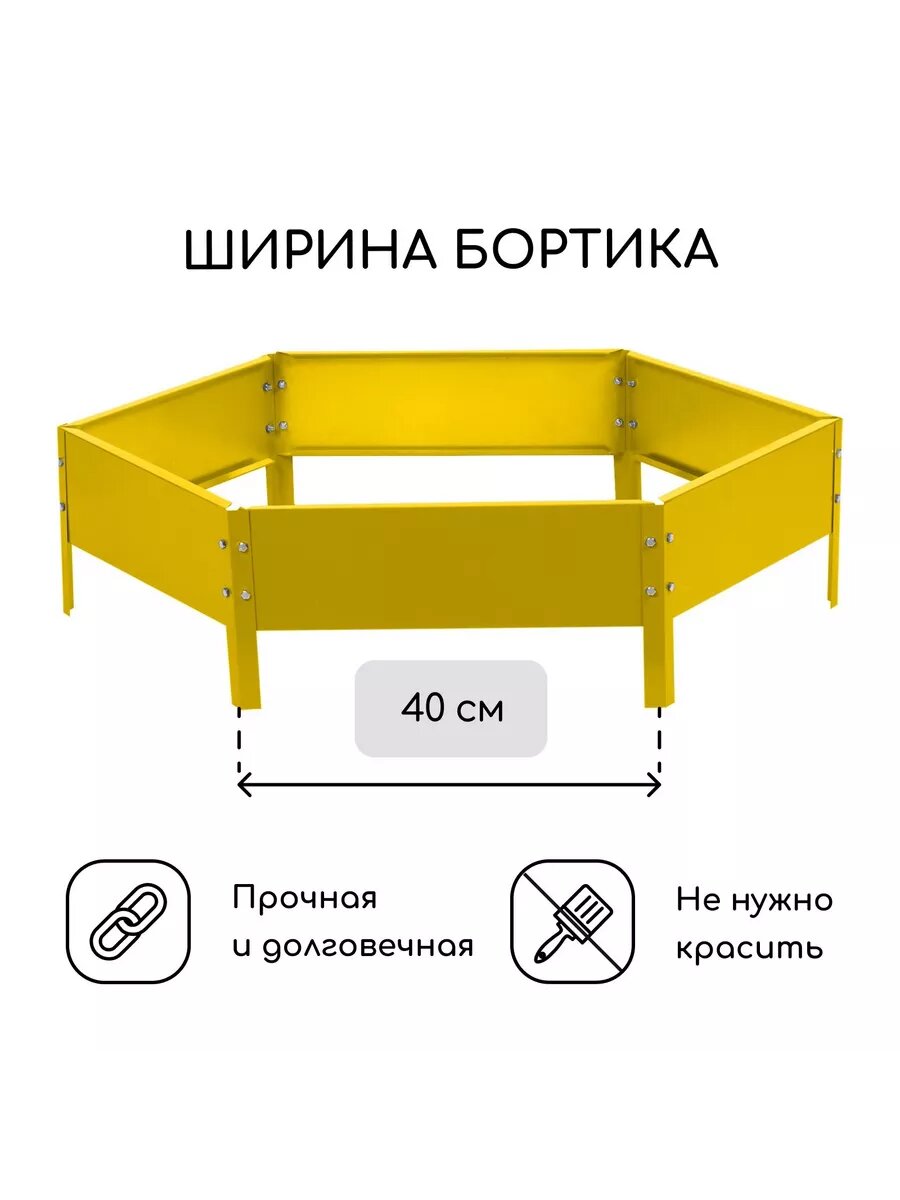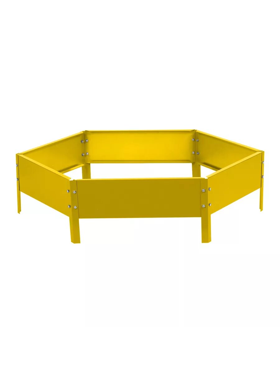 Клумба садовая оцинкованная, одноярусная шестиугольная для дачи, сада и огорода, декоративное ограждение сборное для цветов, диаметр 140 см, высота 15 см, цвет желтый