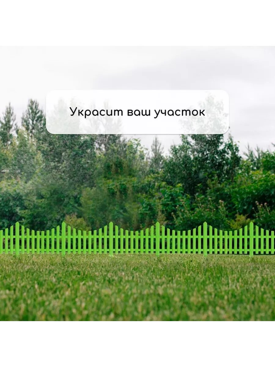 Ограждение декоративное, 30 x 300 см, 5 секций, пластик, салатовое./В упаковке шт: 1