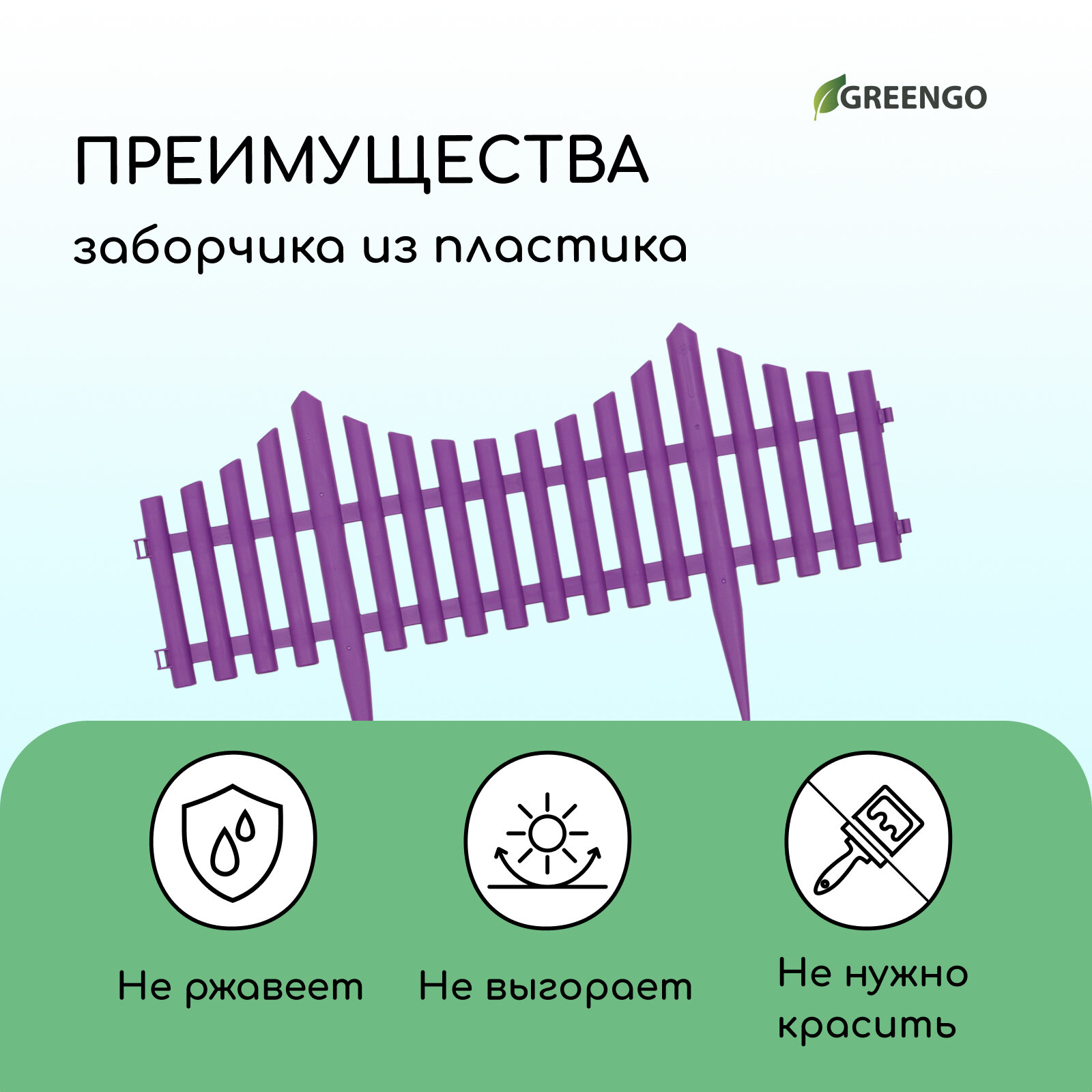 Ограждение декоративное, 30 ? 300 см, 5 секций, пластик, зелёное, Greengo Greengo 3296973 .