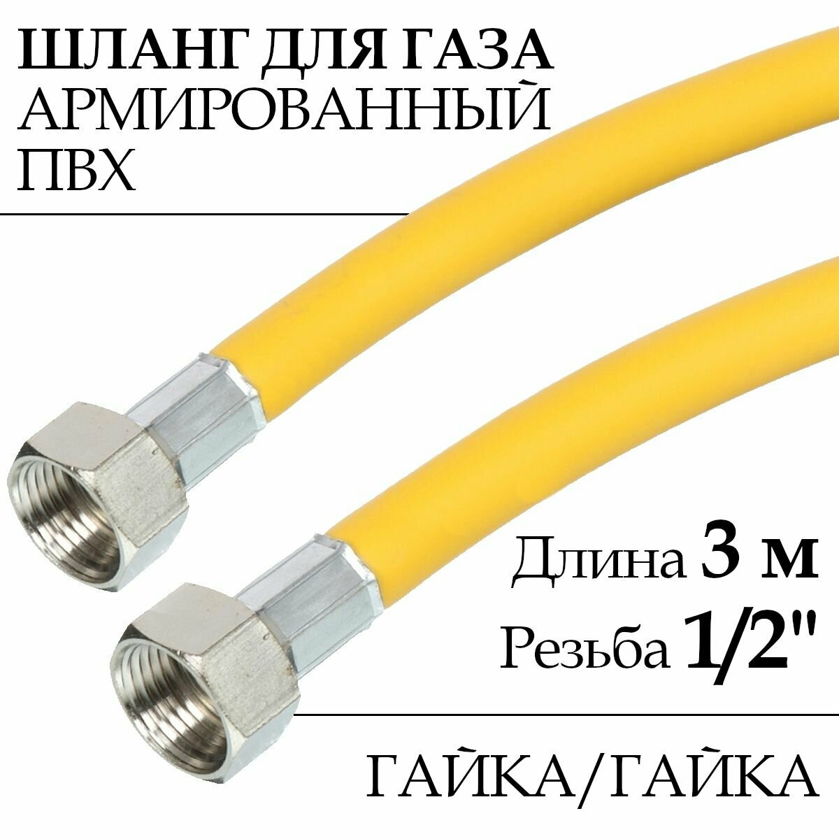 Шланг, подводка для газовых приборов (плит, баллонов) из ПВХ (желтый) 1/2" х 3,0 м, гайка/штуцер шт