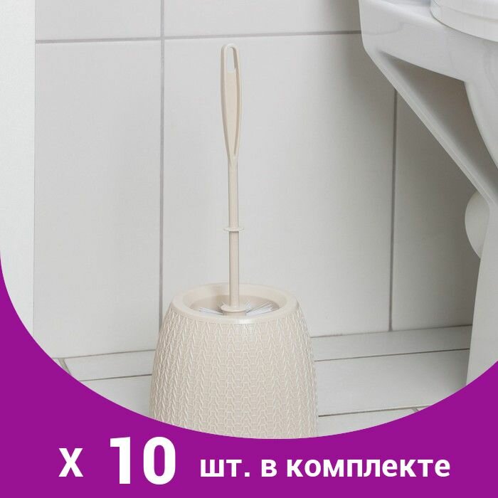 Ёршик для унитаза с подставкой «Вязаное плетение», 15×15×37 см, цвет бежевый