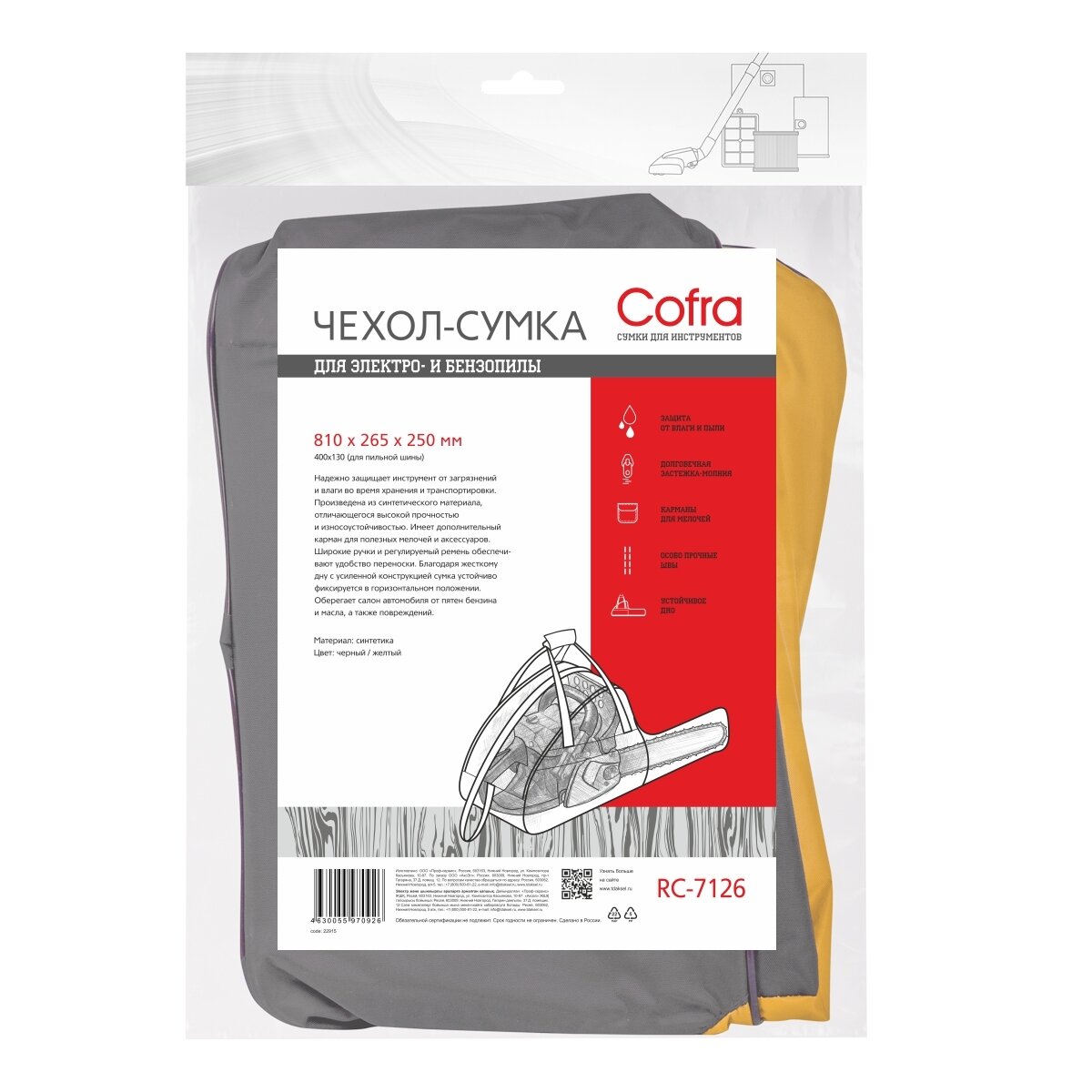 RC-7126 Сумка Cofra для бензопилы, черная/желтая, 810х265х250