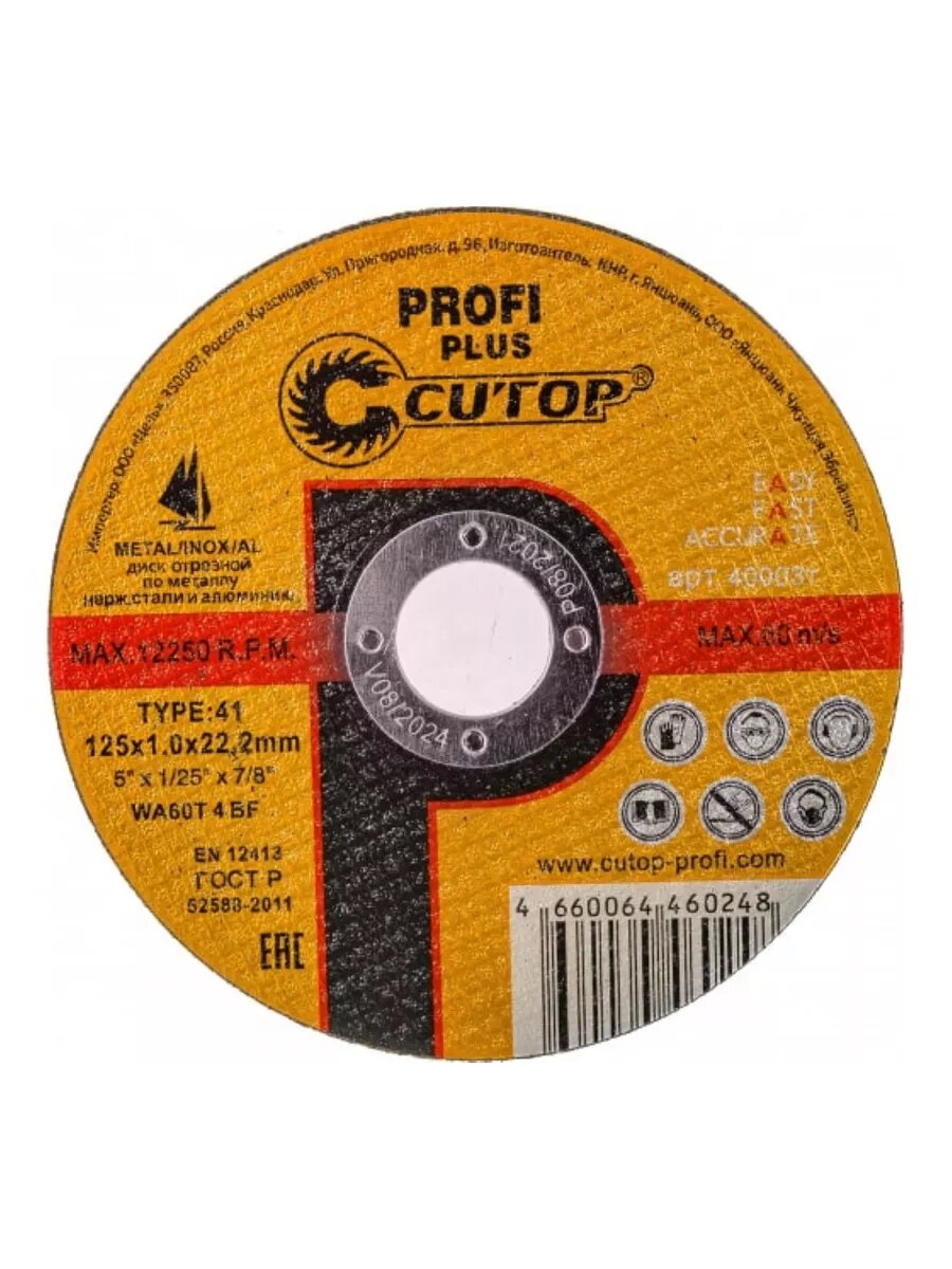 Диск отрезной по металлу и нержавеющей стали Profi Plus CUTOP, Т41-125 х 1,0 х 22,2 мм