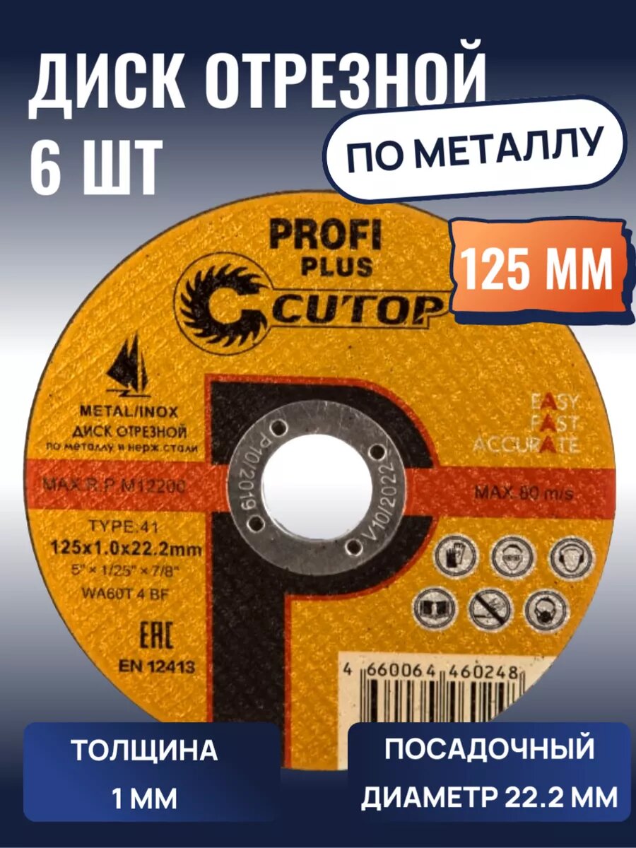 Профессиональный диск отрезной по металлу и нержавеющей стали CUTOP Profi Plus, Т41-125 х 1,6 х 22,2 мм, 6 шт