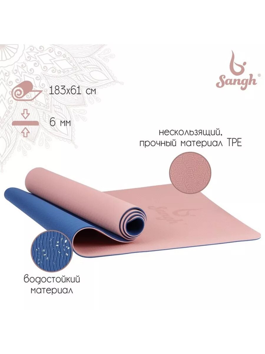 Коврик для йоги Sangh, нескользящий, 183×61×0.6 см, цвет розовый/синий