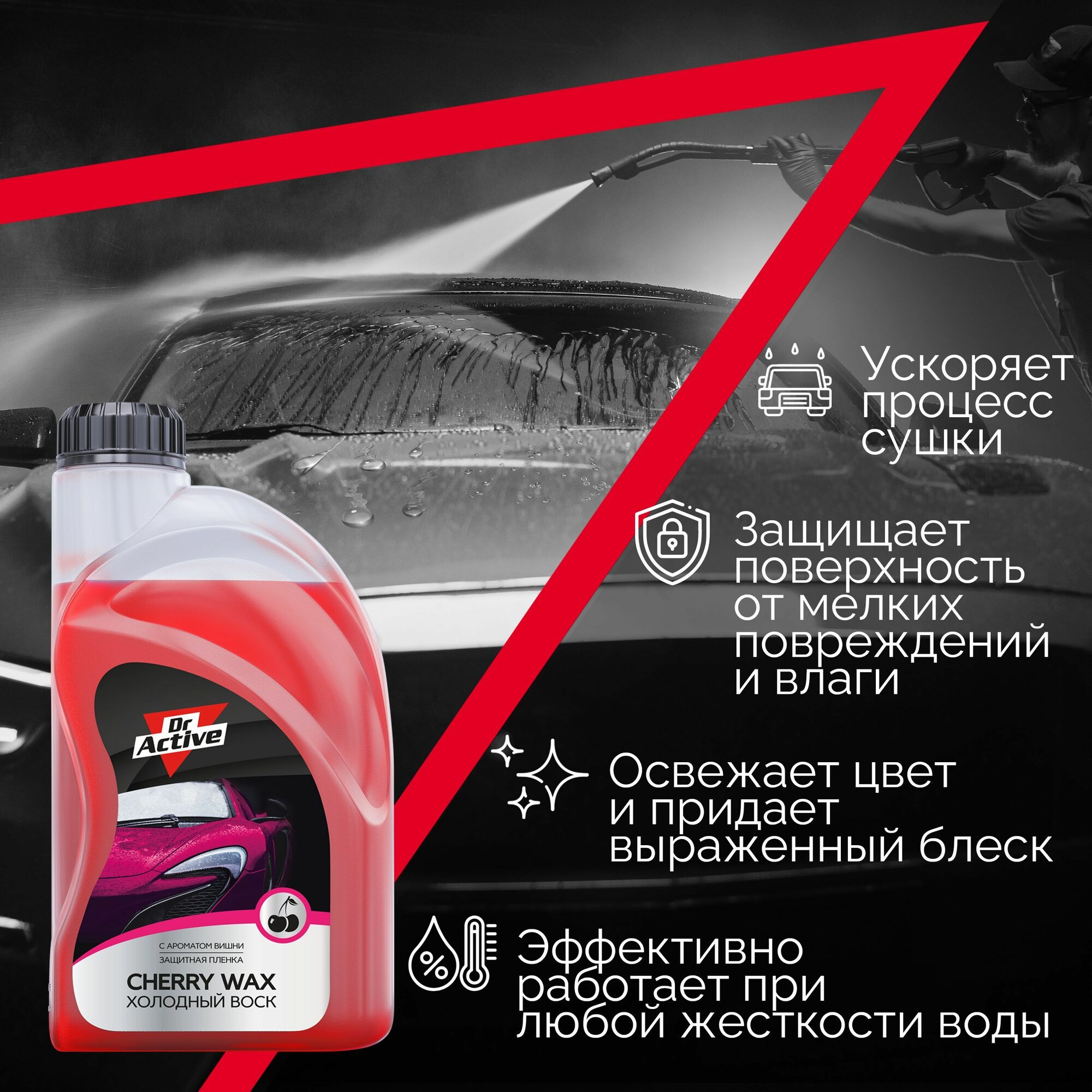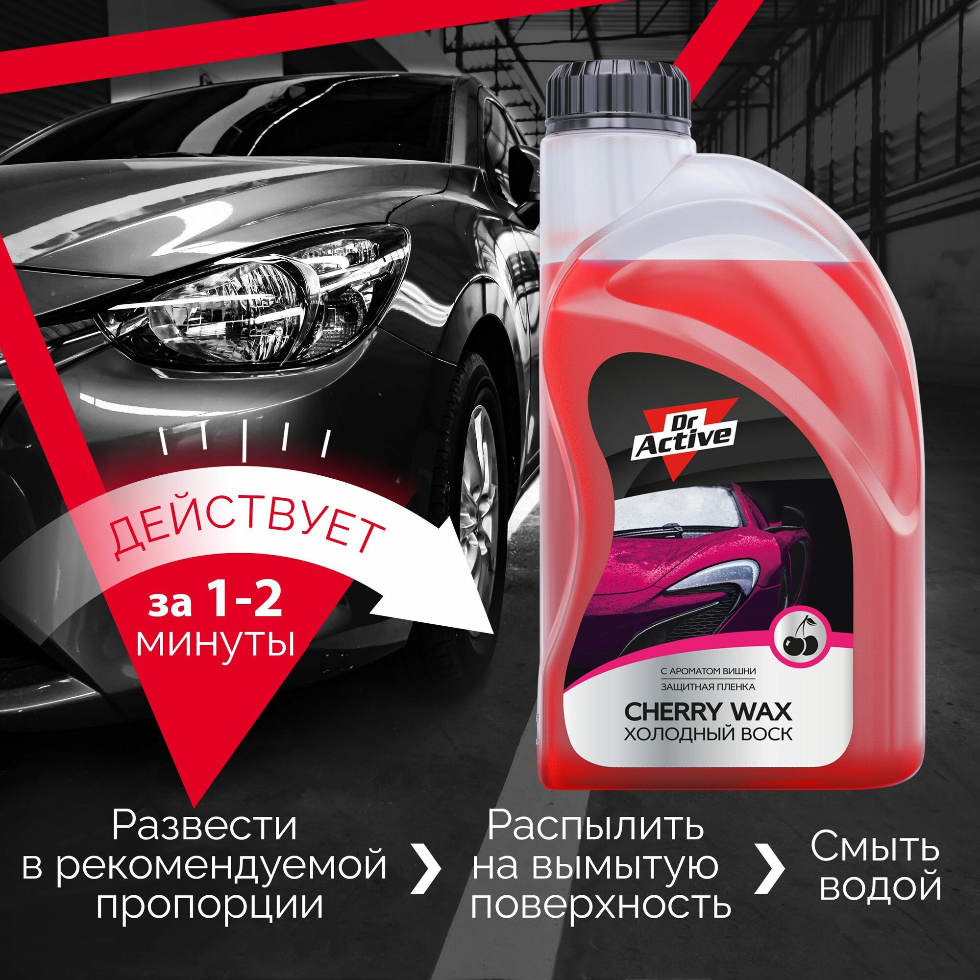 Холодный воск для автомобиля кузова Dr. Active "Cherry Wax" для бесконтактной обработки автомобиля, концентрат 1 л