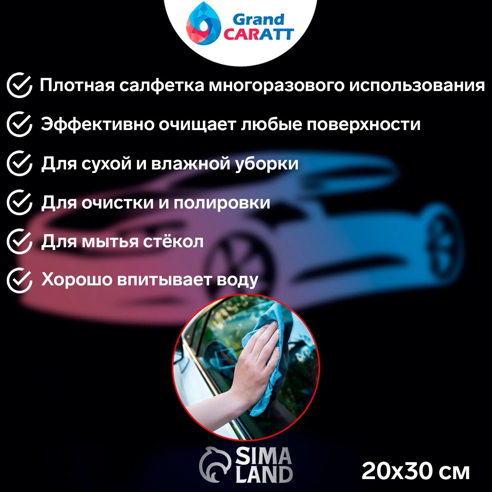 Салфетка для автомобиля Grand Caratt, микрофибра, 350 г/м?, 30 х 70 см. синий Grand Caratt 5391078