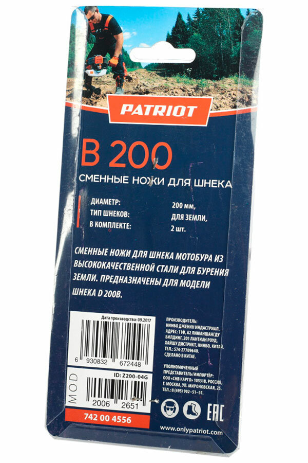Ножи сменные B 250 для шнека D 250B, диаметр 250мм (пара) PATRIOT 742004557