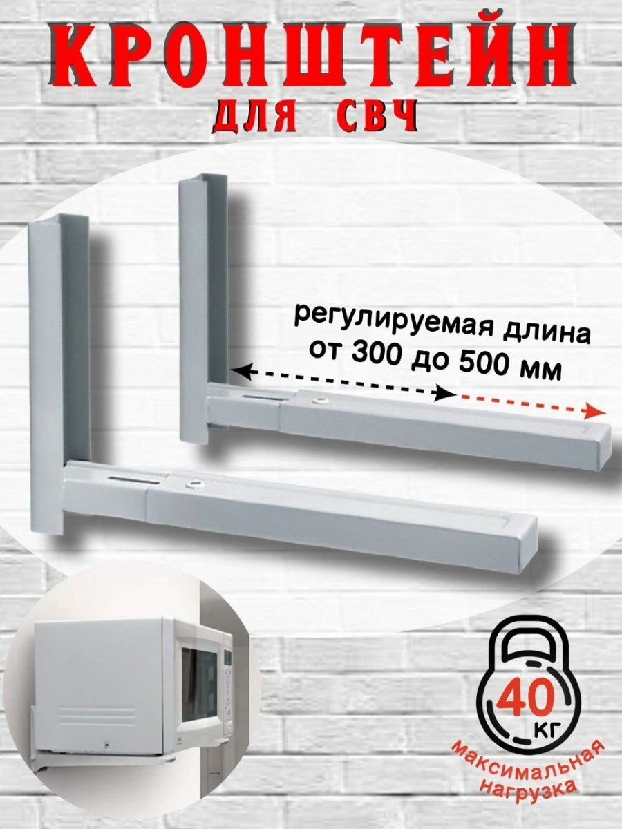 Кронштейн С 2, для микроволновой печи, регулируемый, до 40 кг, 300-500 мм, белый