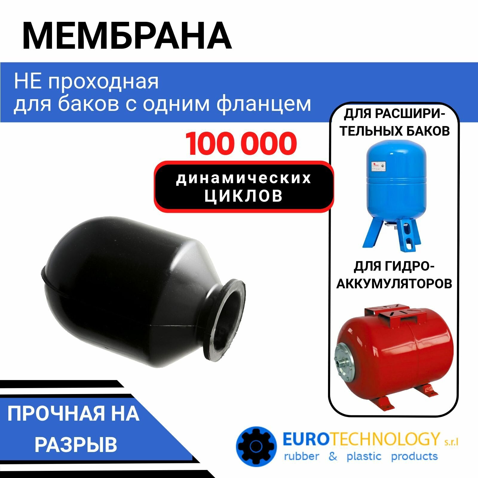 Мембрана для гидроаккумулятора Eurotechnology 100/150LT-110AR EPDM (9643) проходная