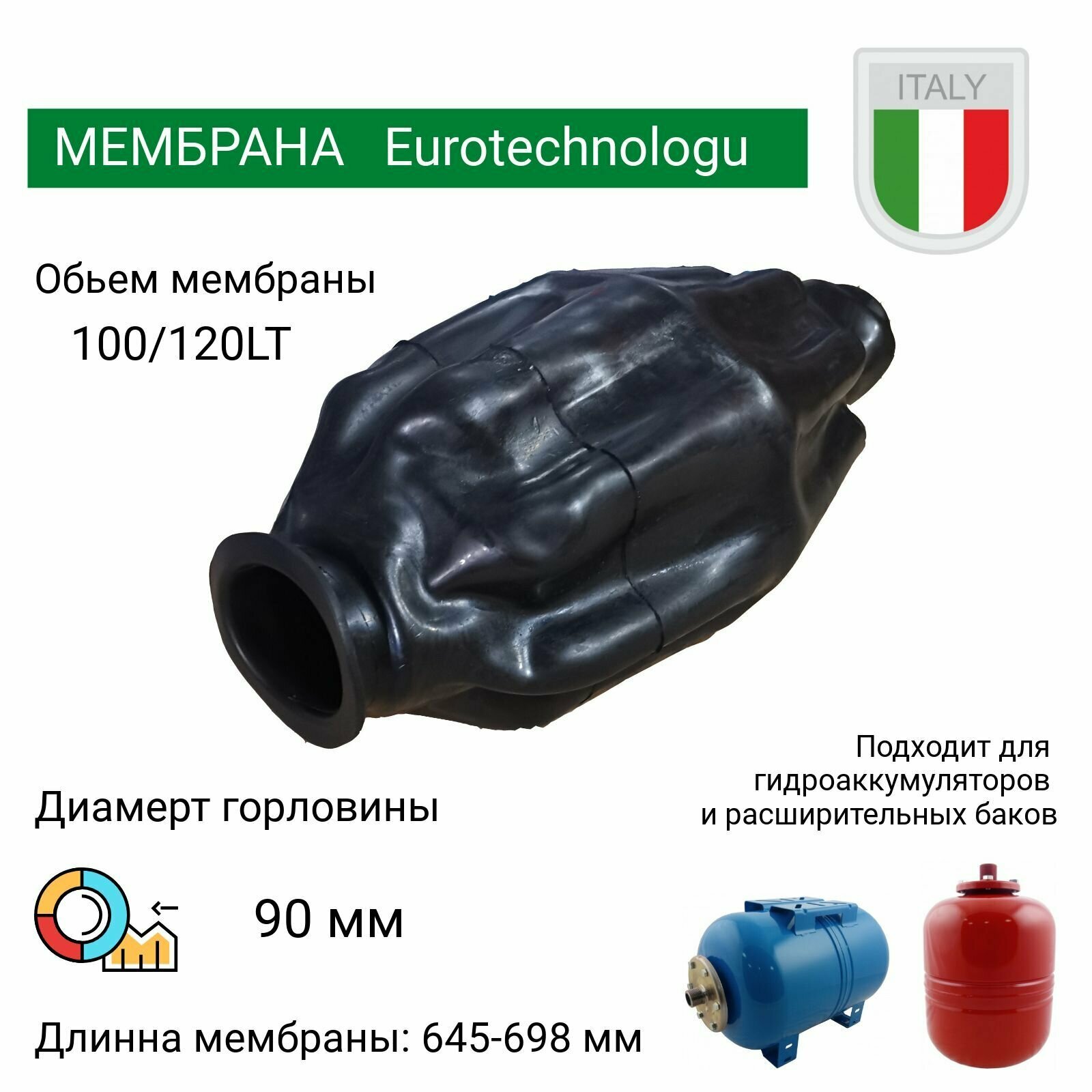 Мембрана для гидроаккумуляторов 100л, горловина 90 мм EPDM пищевая (9640WHFL) Eurotechnology Италия интересное: