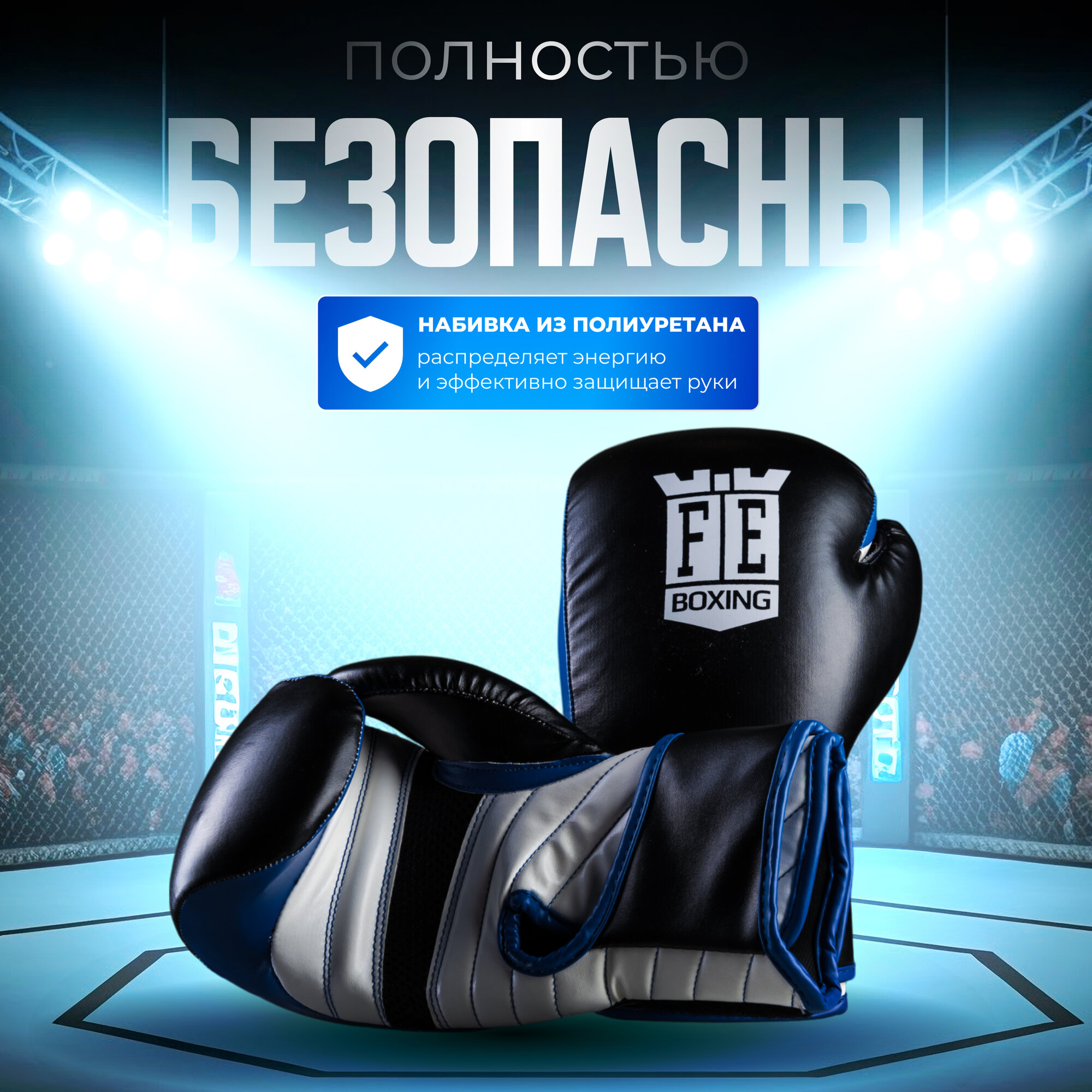 Перчатки боксерские Fight Empire Max Force, 8 унций, MAX FORCE, 16 унций, цвет черный/синий