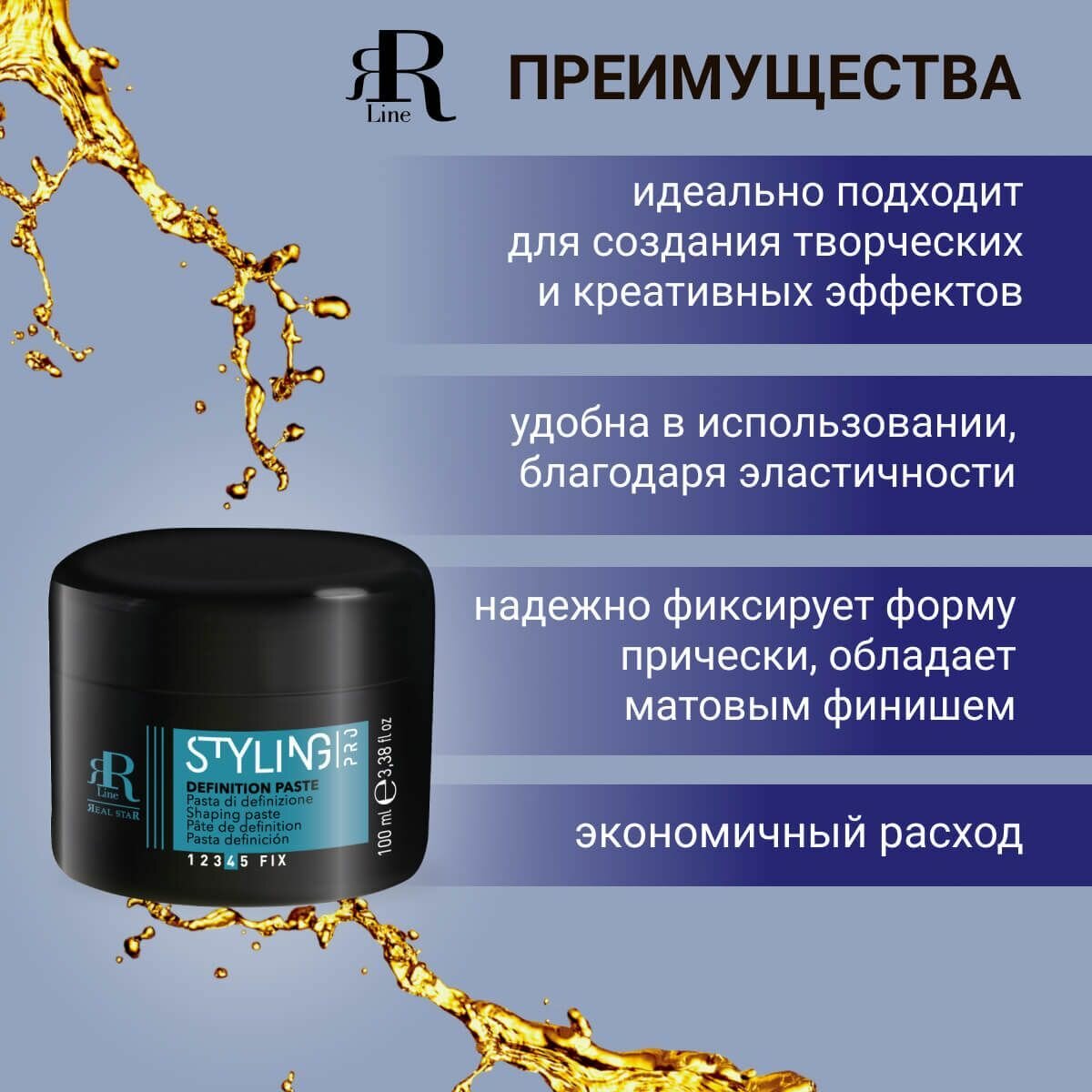 Паста для волос эластичная полуматовая сильной фиксации RR Line Styling Pro Definition paste, 100 мл интересное: