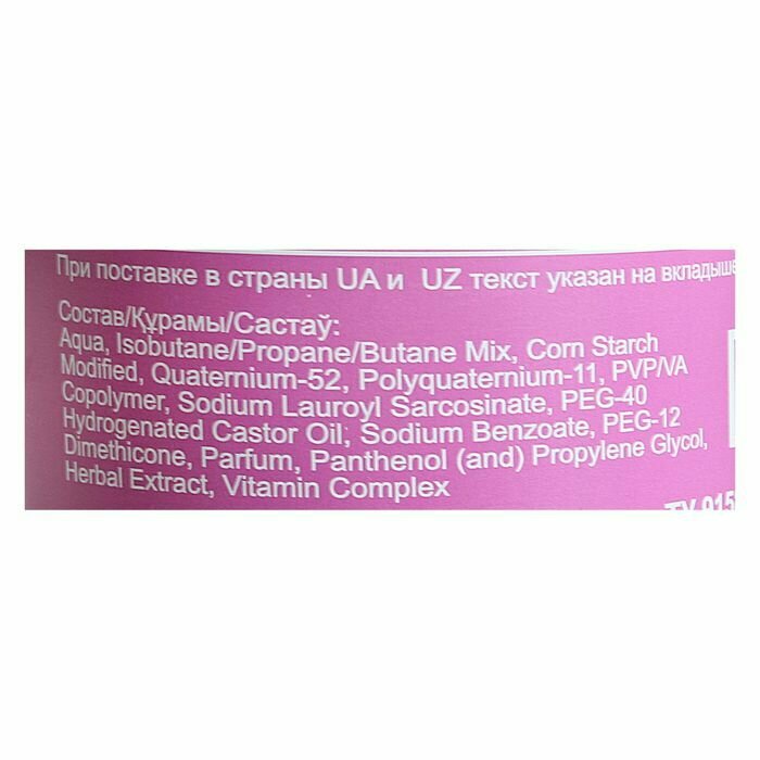 Мусс для волос романтика Розовый, очень сильная фиксация, с бета-каротином, 200 мл