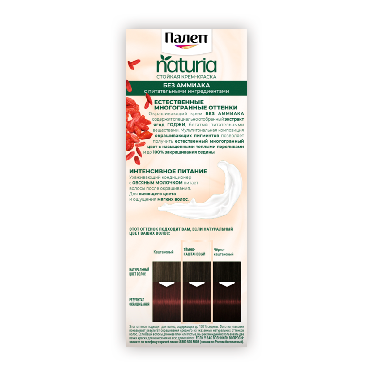 Палетт Naturia Стойкая крем-краска для волос, 4-0 Каштановый, 110 мл - 6 шт