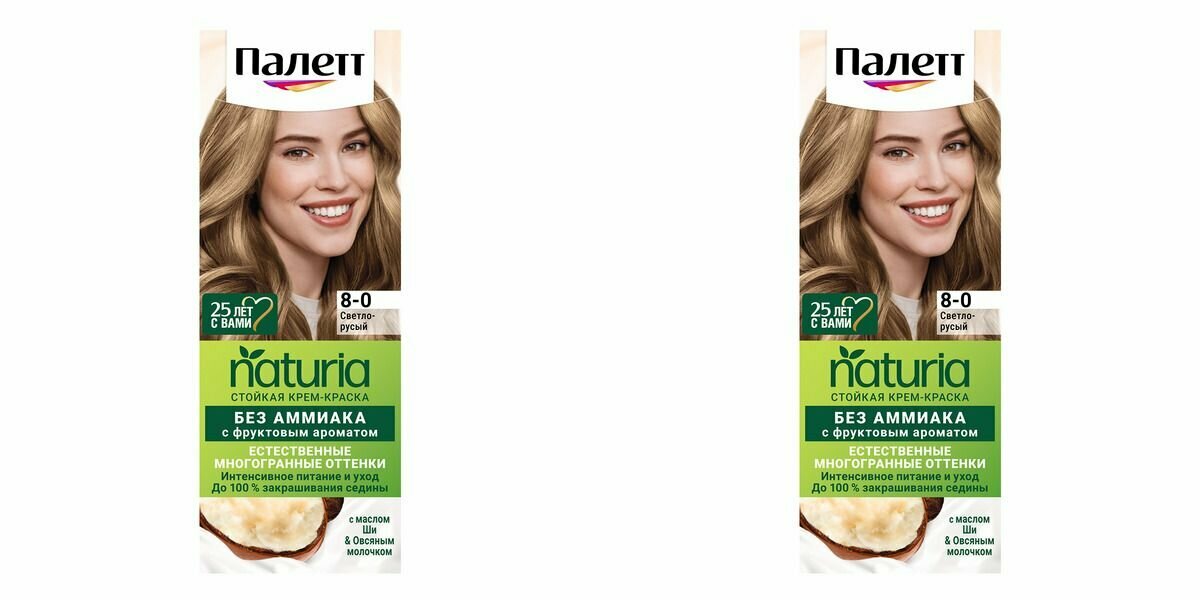 Купить Палетт Naturia Стойкая крем-краска для волос, 8-0 Светло-русый, 110 мл - 2 шт
