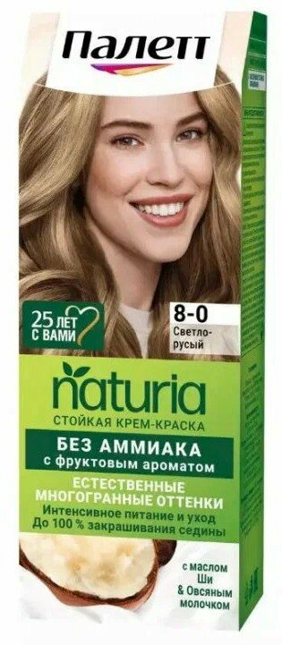 Купить Палетт Naturia Стойкая крем-краска для волос, 8-0 Светло-русый, 110 мл - 6 шт