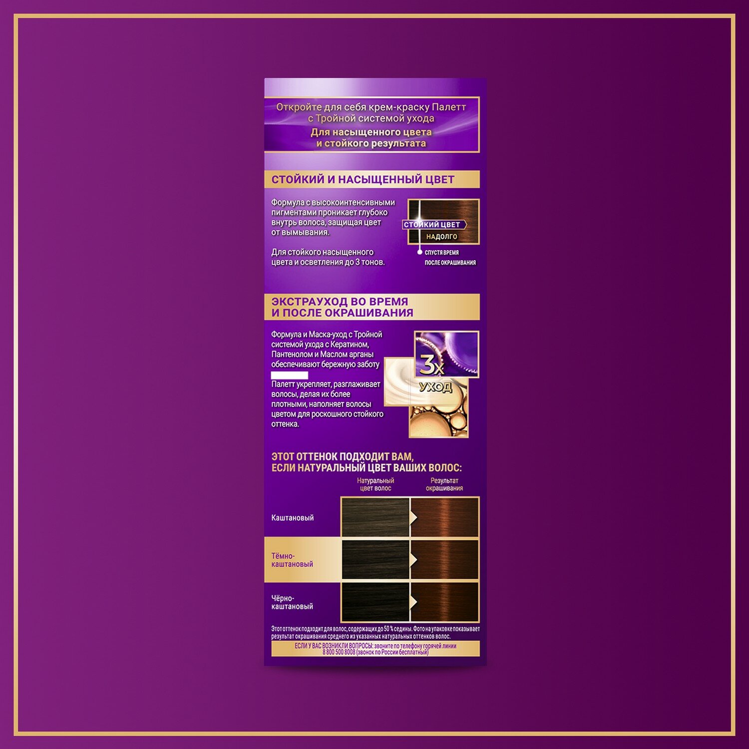 Палетт Стойкая крем-краска Интенсивный цвет, N3 4-0 Каштановый, 110 мл - 3 шт