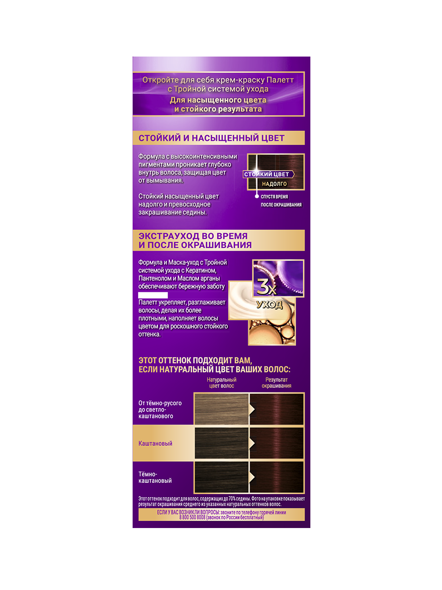 Палетт Стойкая крем-краска Интенсивный цвет, N3 4-0 Каштановый, 110 мл - 3 шт