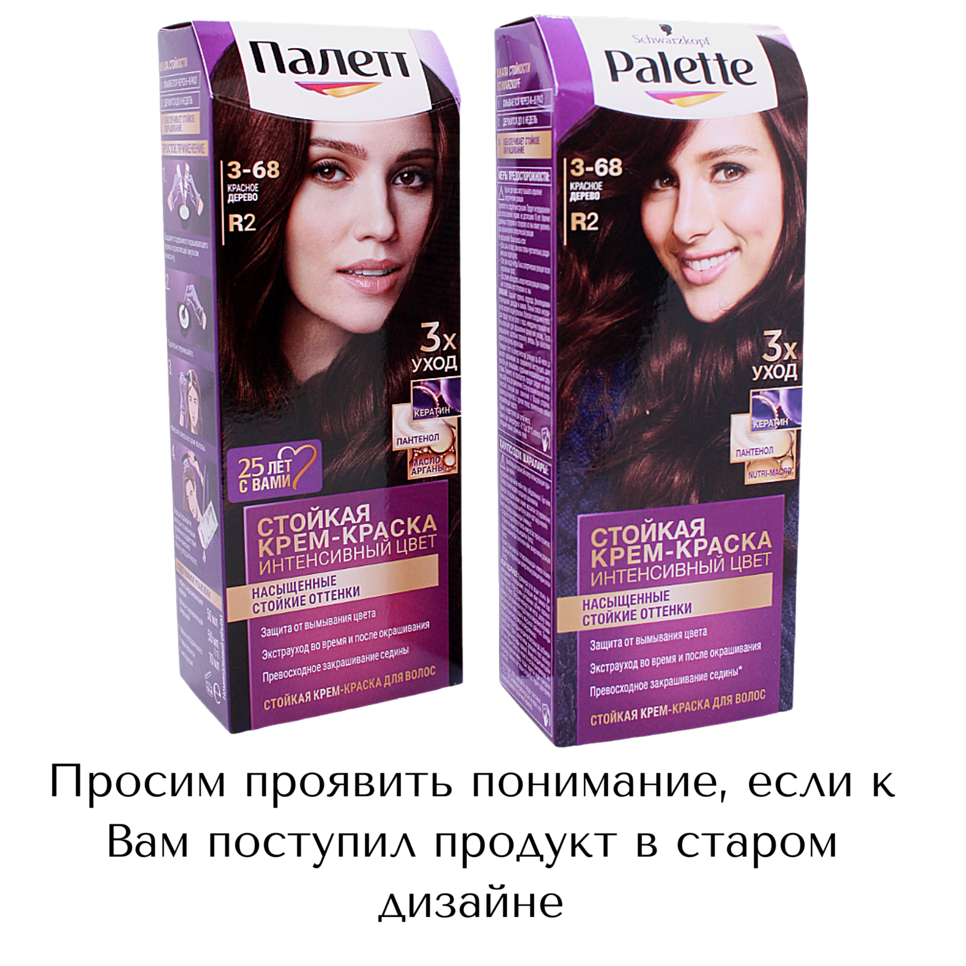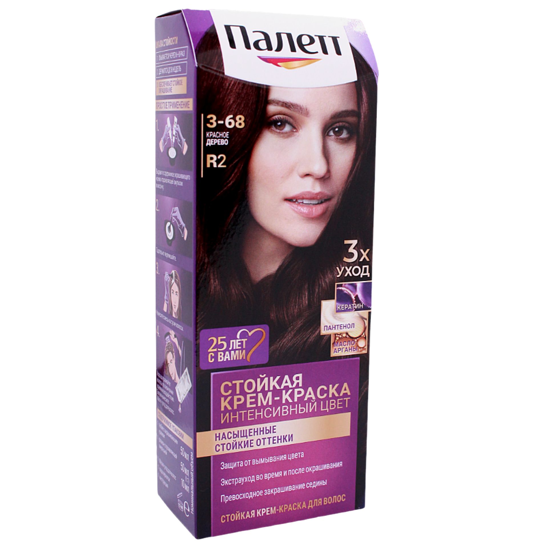 Palette Крем-краска стойкая для волос Интенсивный цвет 3-68 Красное дерево, 110 мл , 2 шт