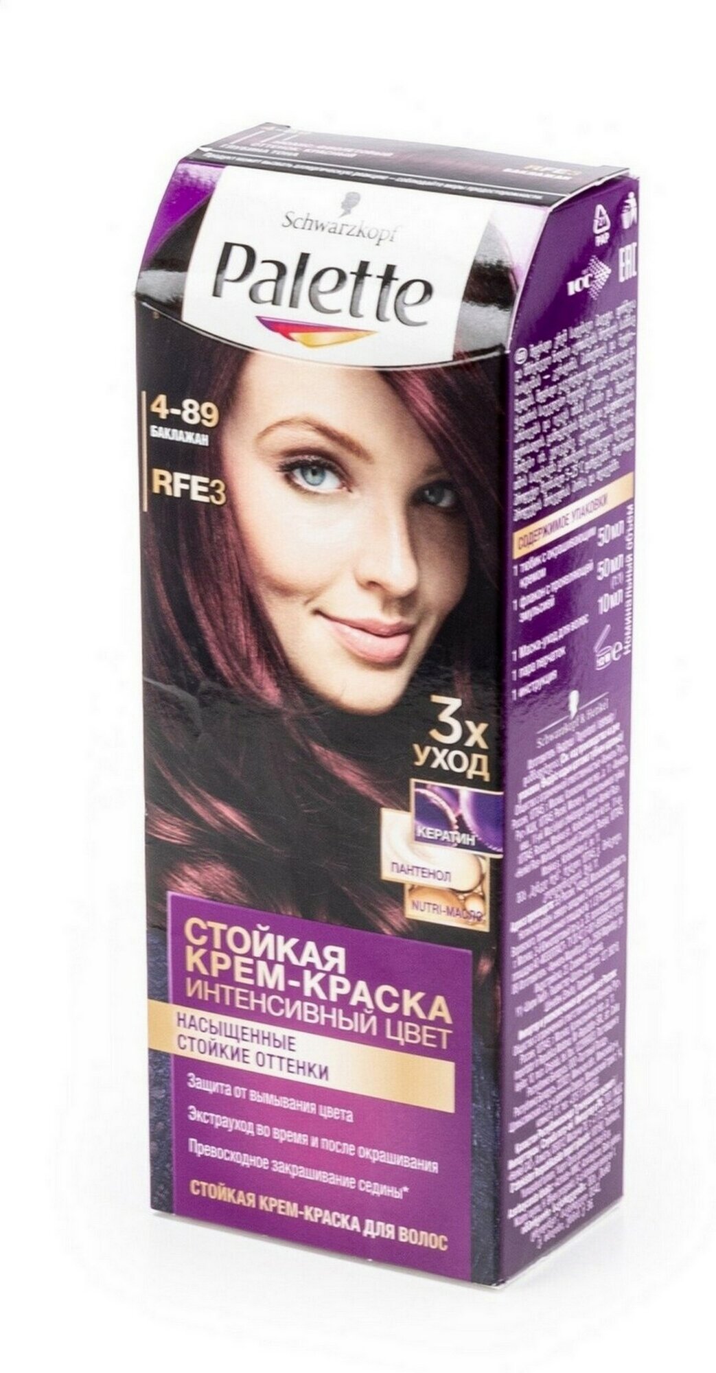 Ниже Вы можете прочитать отзывы на Палетт Стойкая крем-краска Интенсивный цвет, RFE3 4-89 Баклажан, 110 мл - 3 шт, ознакомится с подробными характеристиками, посмотреть интересные обзоры и фотографии на Палетт Стойкая крем-краска Интенсивный цвет, RFE3 4-89 Баклажан, 110 мл - 3 шт.