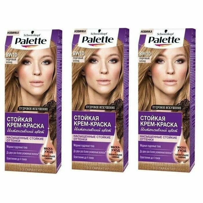 Палетт Стойкая крем-краска Интенсивный цвет, BW10 Пудровый Блонд, 110 мл - 3 шт