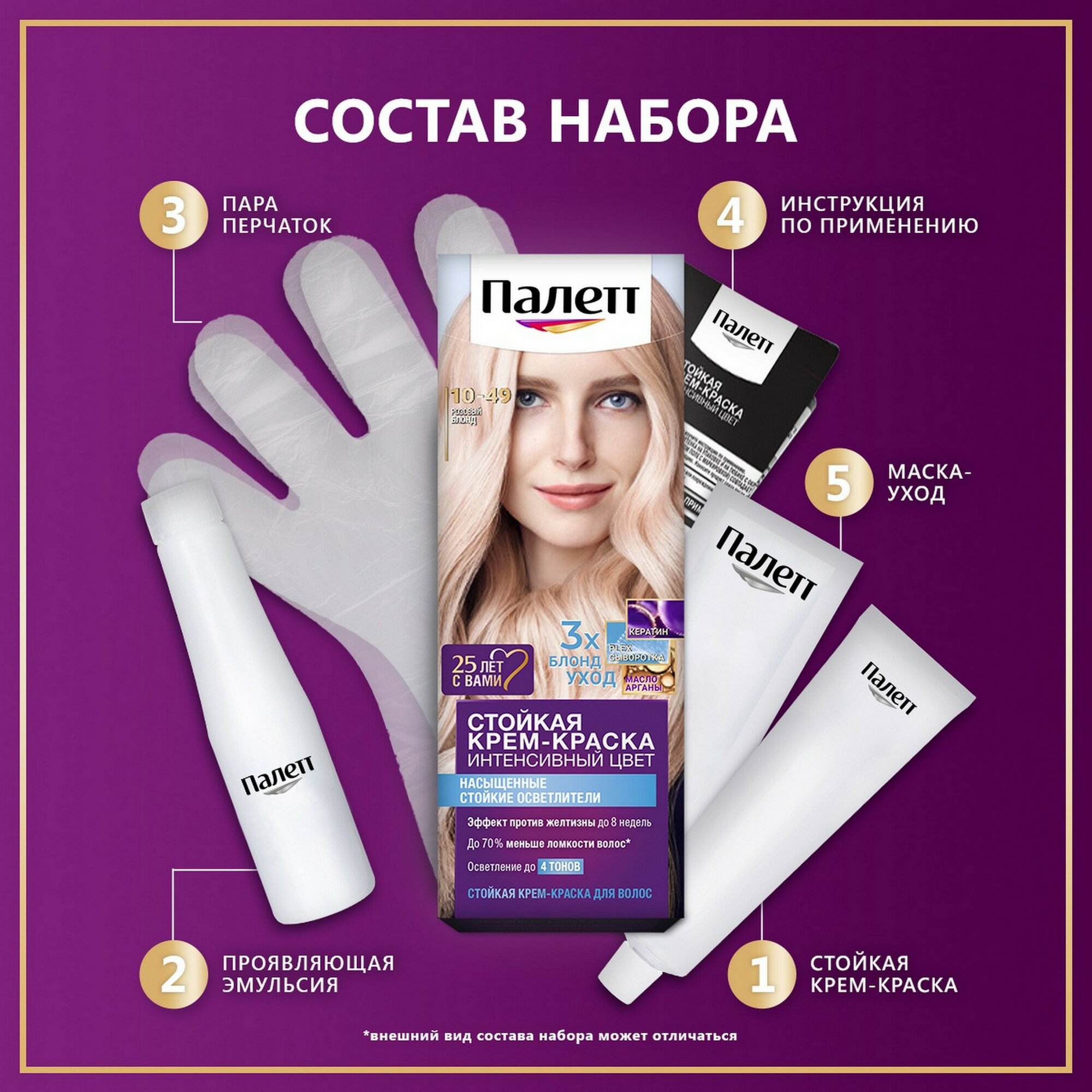 Купить Палетт Стойкая крем-краска Интенсивный цвет, 10-49 Розовый блонд, 110 мл - 6 шт