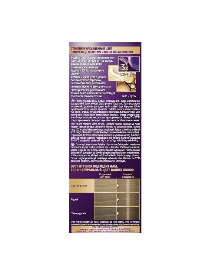 Палетт Стойкая крем-краска Интенсивный цвет, 9-14 Жемчужный светло-русый, 110 мл - 3 шт