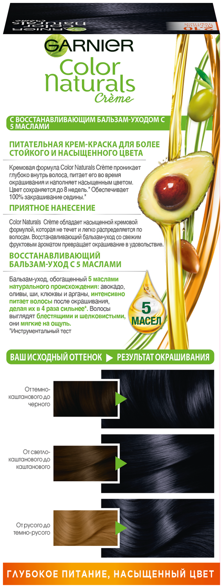Купить Garnier Стойкая питательная крем-краска для волос "Color Naturals", оттенок 2.10, Иссиня черный, 110мл