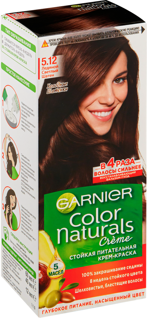 Краска для волос Garnier, Color Naturals, тон 5.12, оттенок Ледяной Светлый Шатен, 110 мл.