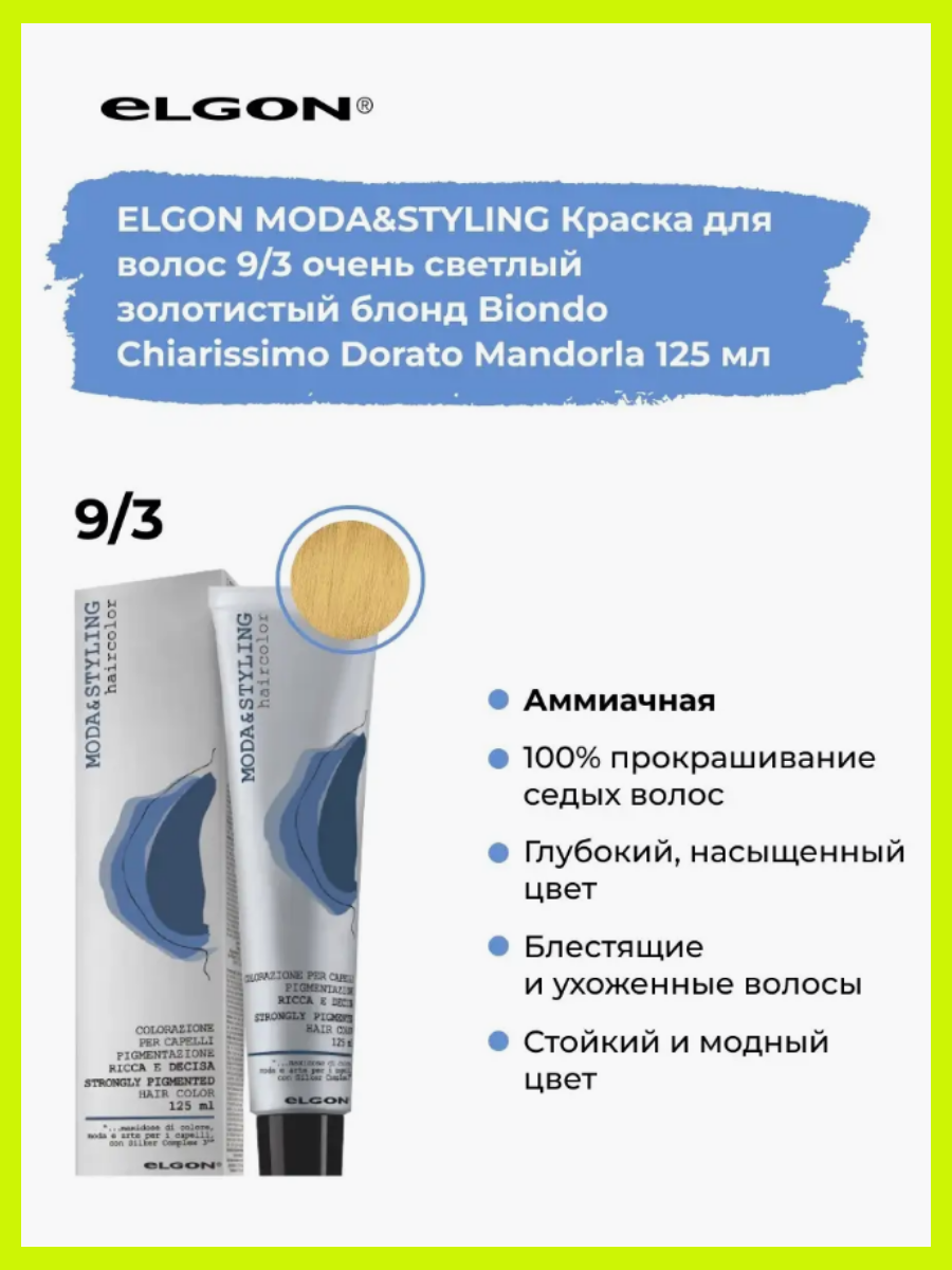СохранитьКрем - краска для волос профессиональная Elgon Moda&Styling 9/3 Блонд Золотистый 125 мл интересное: