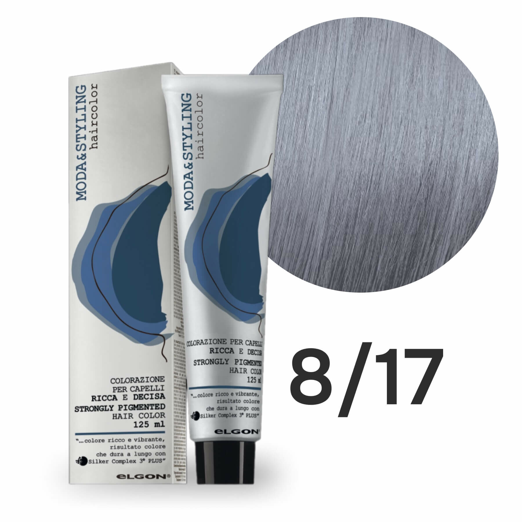 Купить Крем - краска для волос профессиональная Elgon Moda&Styling 8/17 Светлый русый Пепельно-жемчужный 125 мл