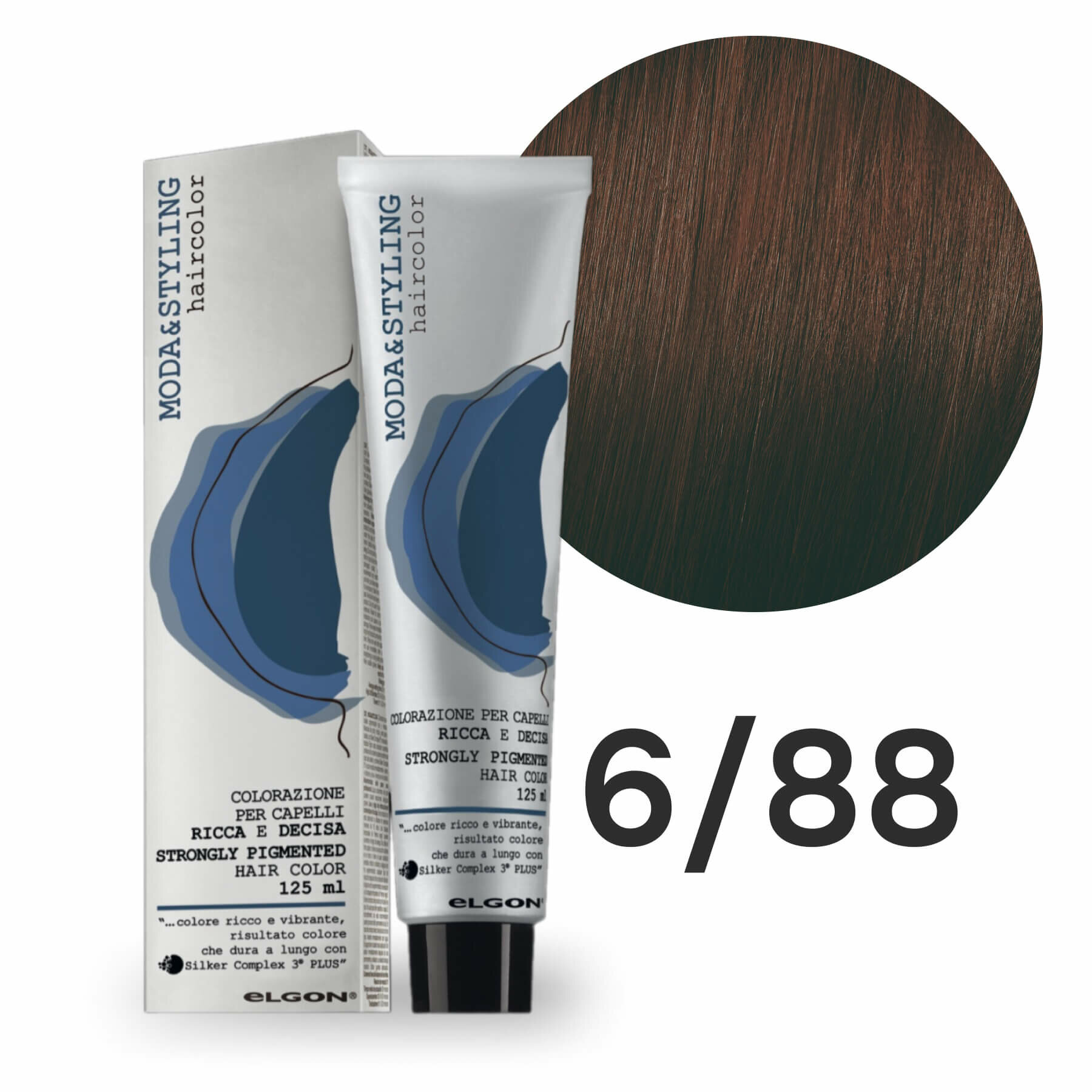 Купить Крем - краска для волос профессиональная Elgon Moda&Styling 6/88 Тёмный русый Интенсивно-коричневый 125 мл
