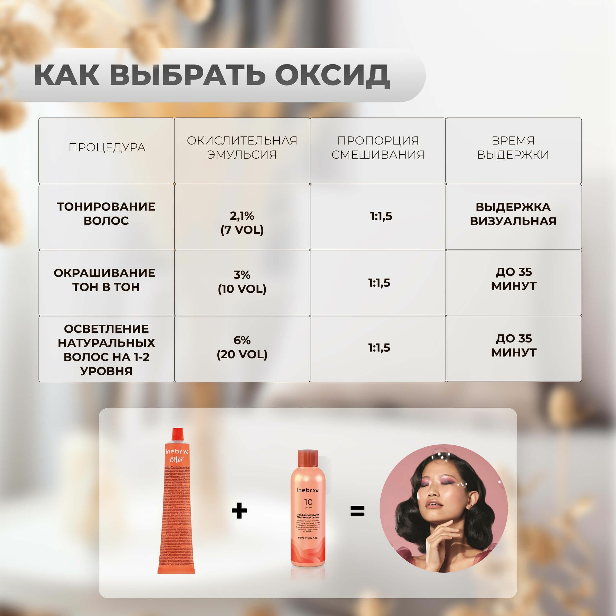 | Отзыв: | Оттенок 5.73 немного темнее, чем ожидала. Но в целом всё здорово! Краска легла ровно, волосы мягкие и сияющие. Всё делала по инструкции, использовала оксид из линейки inebrya - эффект отличный. |