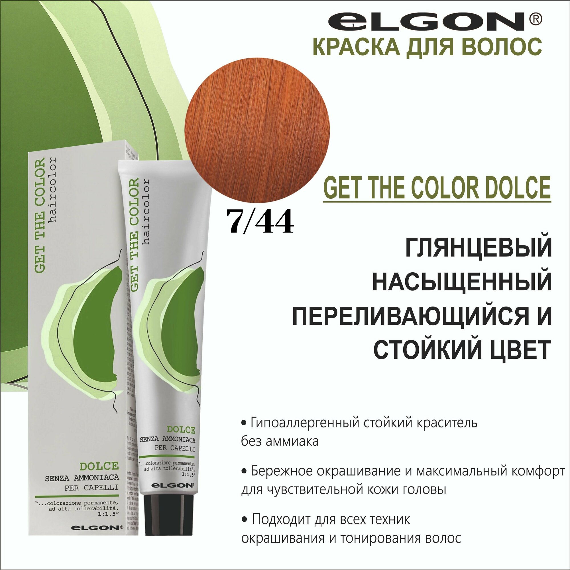 Купить Крем - краска для волос профессиональная Elgon Get the Color Dolce 7/44 Русый Насыщенный медный 100 мл