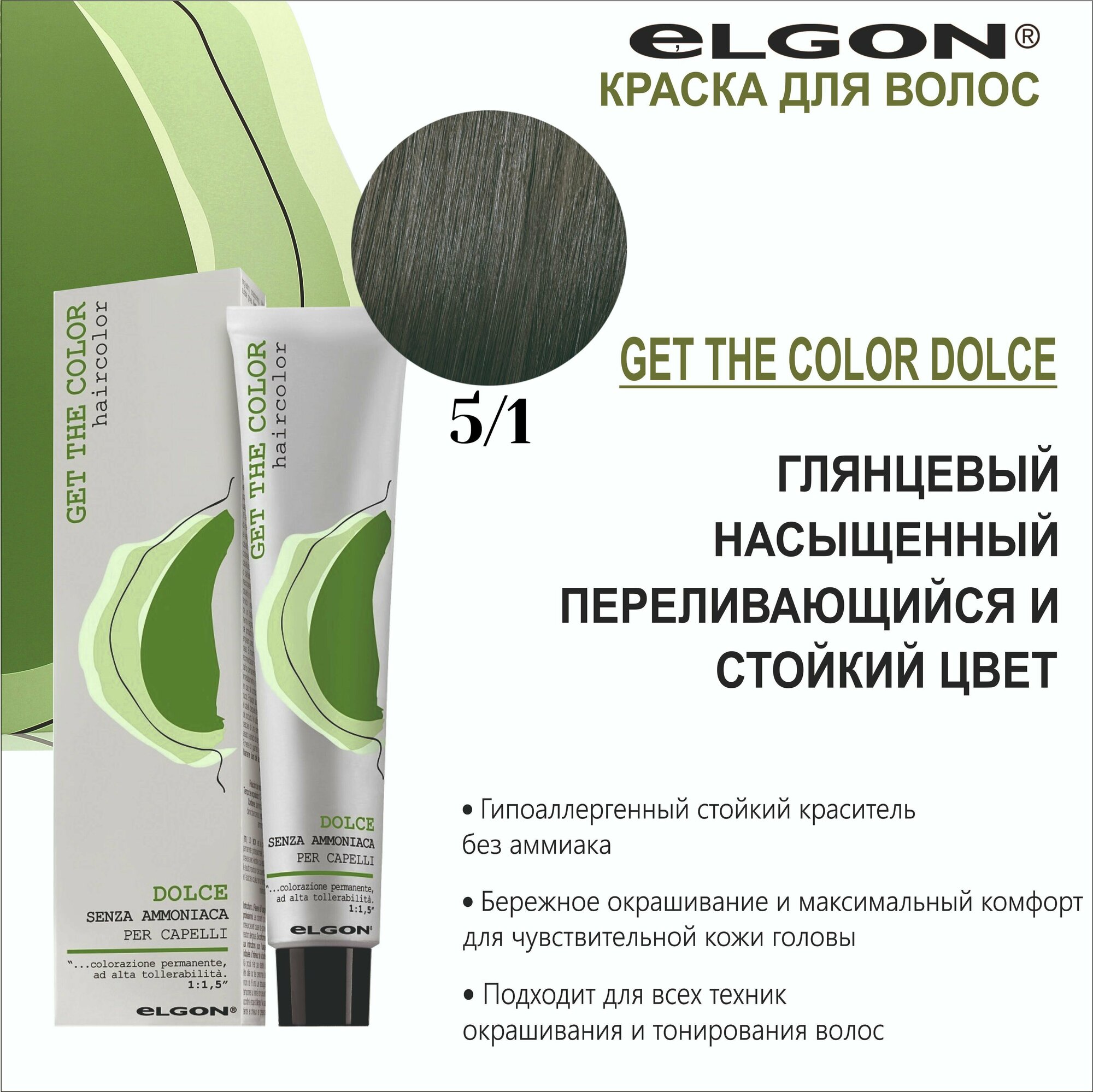 Купить Крем - краска для волос профессиональная Elgon Get the Color Dolce 5/1 Светлый каштановый Пепельный 100 мл