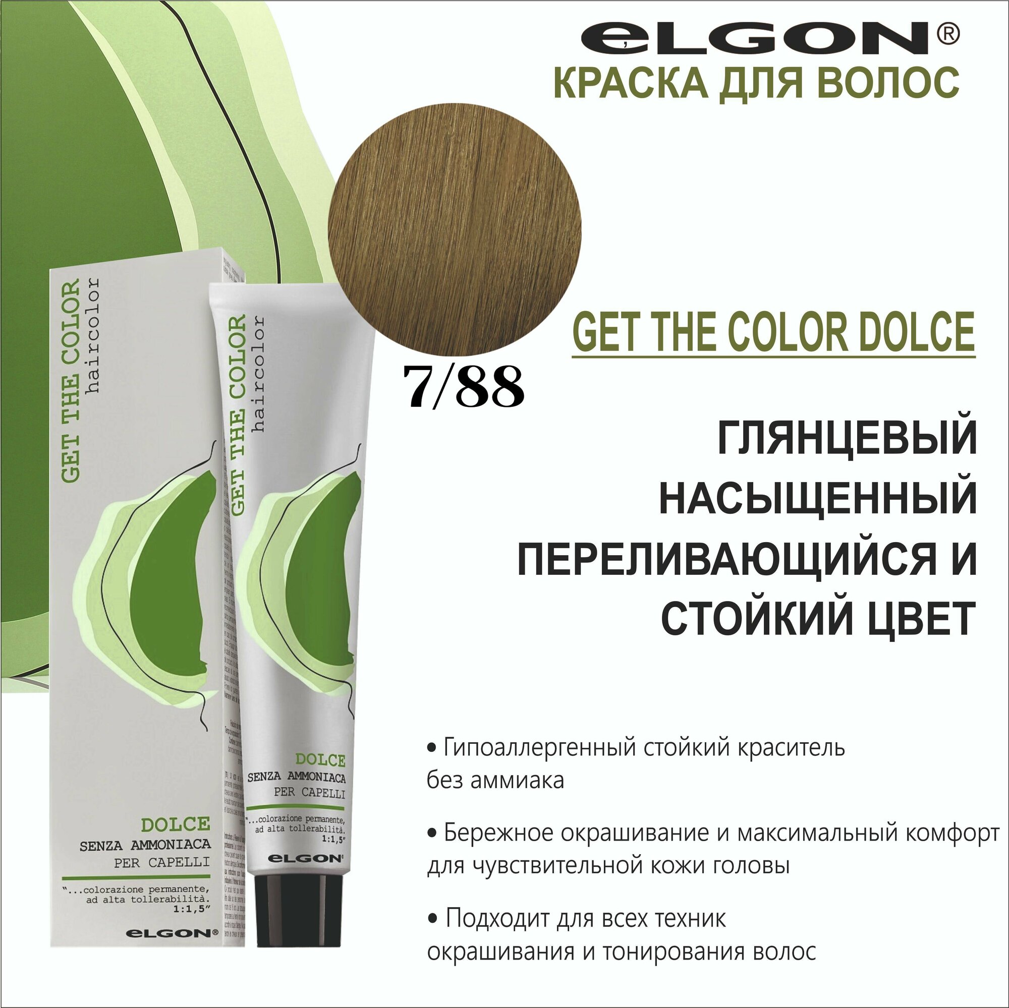 Купить Крем - краска для волос профессиональная Elgon Get the Color Dolce 7/88 Русый Насыщенный шоколадный 100 мл