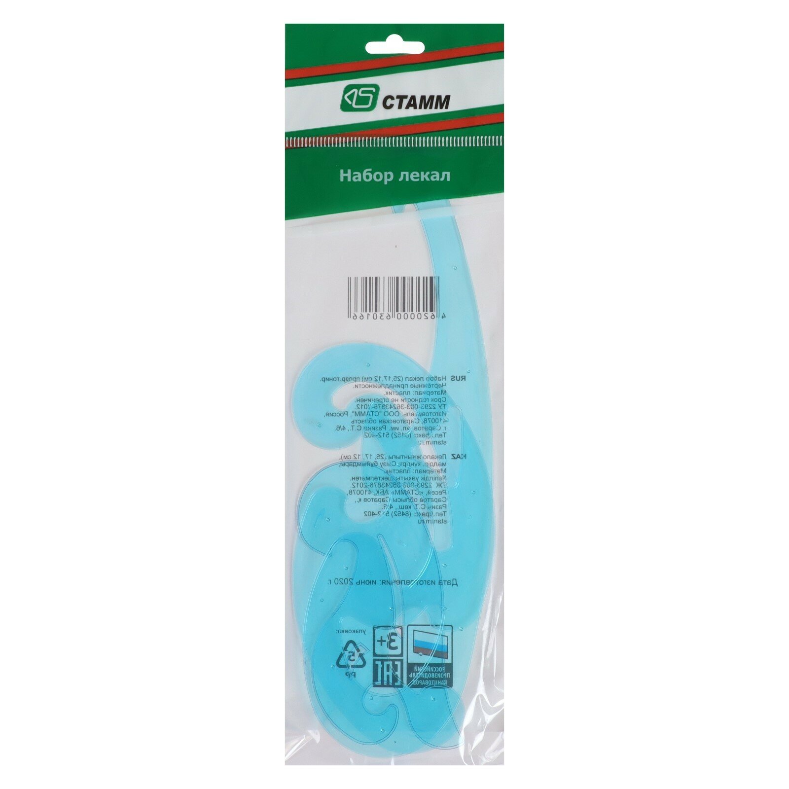 Лекало, набор 3 шт. СТАММ, 25 см, 17 см, 12 см, прозрачные, тонированные, европодвес, ЛК01